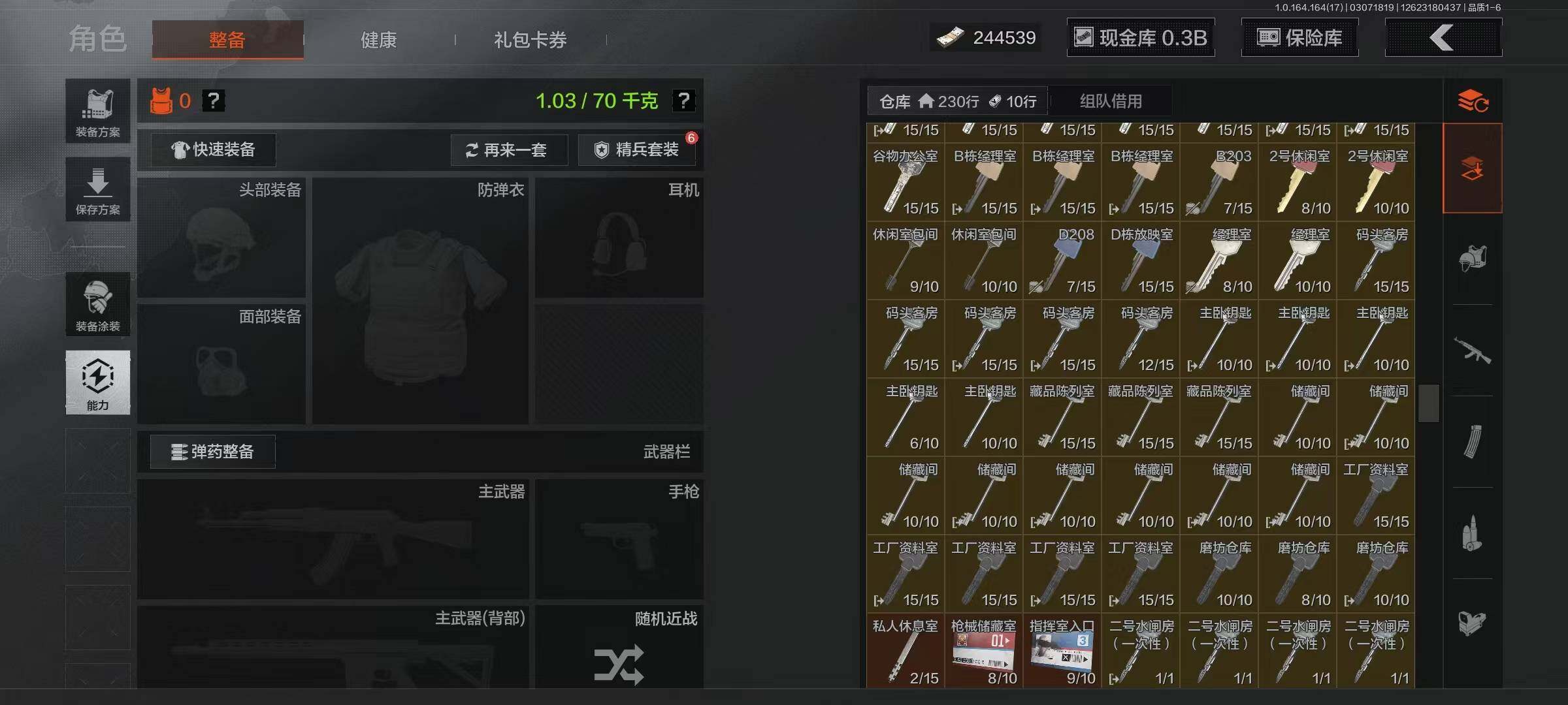 【AQZ260】等级:30/段位:暗区传说/仓库价值(百万):329.2/柯恩币:244539/骑士之剑AX50/骑士之剑VSS/旧王圣谕VSS