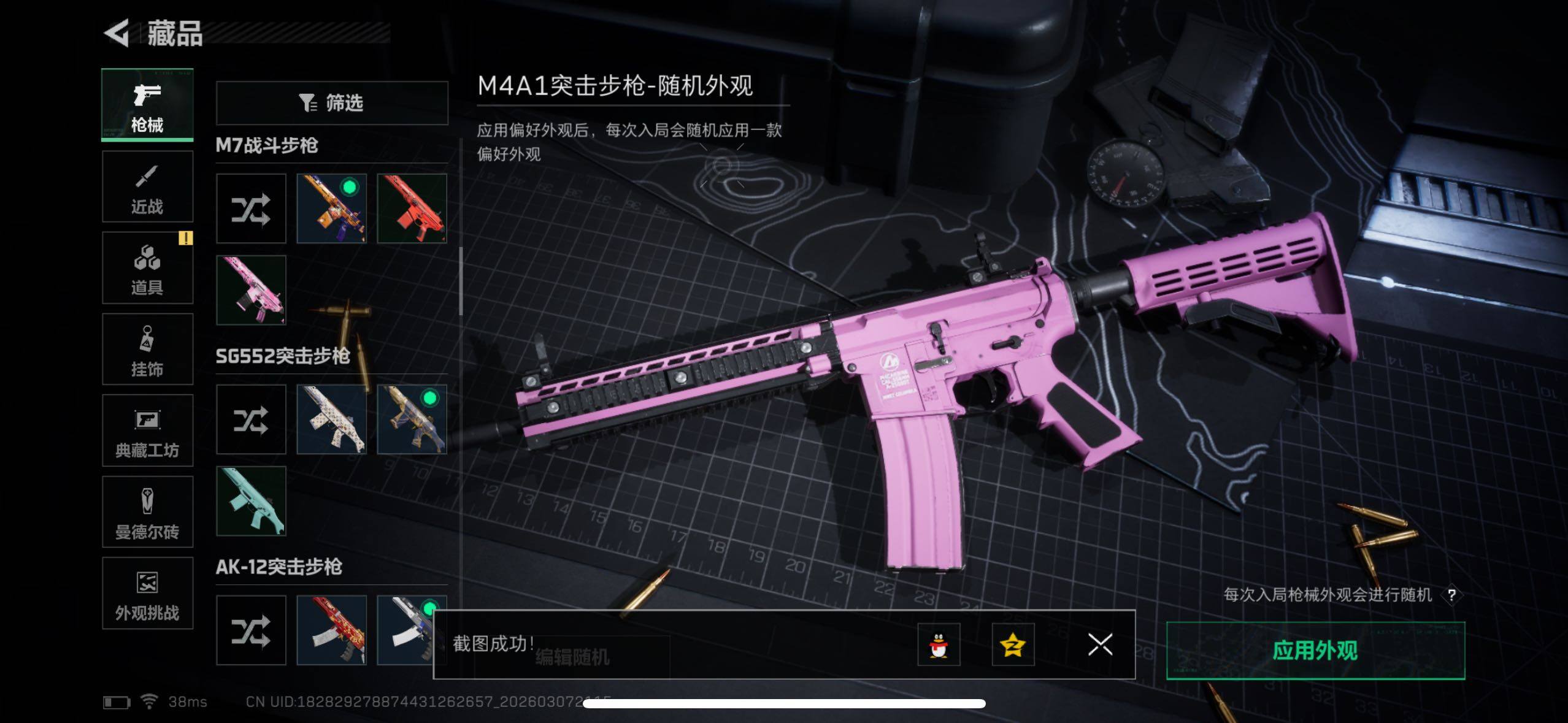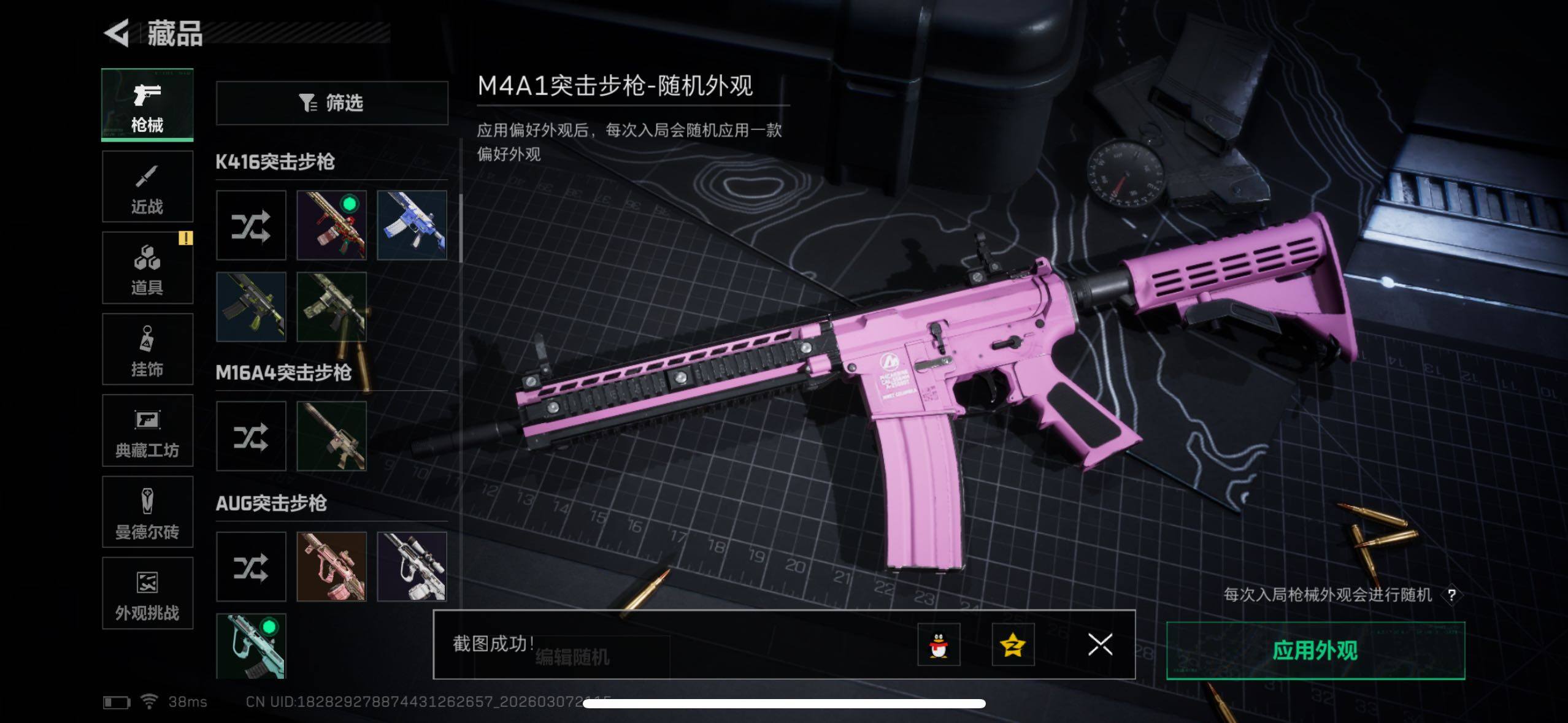 【史诗外观】:K416突击步枪-冬日风情,AUG突击步枪-蝮蛇,G3战斗步枪-哈夫克警备,MP5冲锋枪-竞技风,MP7冲锋枪-六套之
