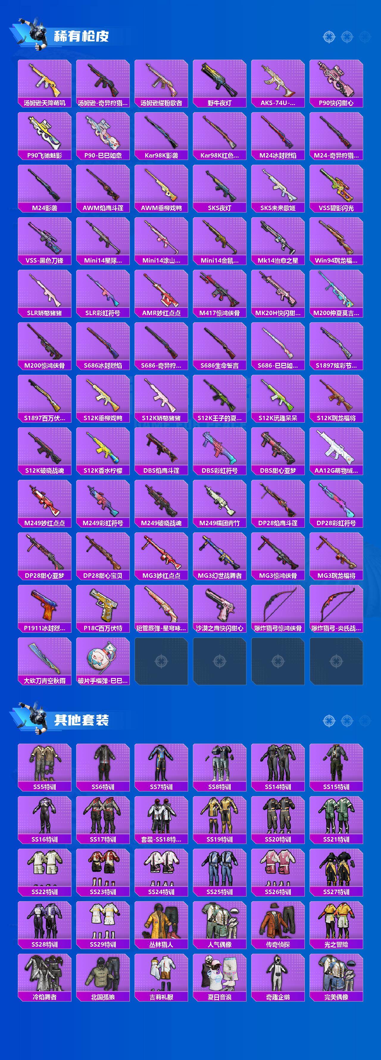 【粉色枪皮等级】:AKM-绿萝繁花(五级),SCAR-L-锦绣绵绵(五级),M416-电玩时刻(五级),UMP45-量子极限(五级),Kar98K-巳巳如意(五级)