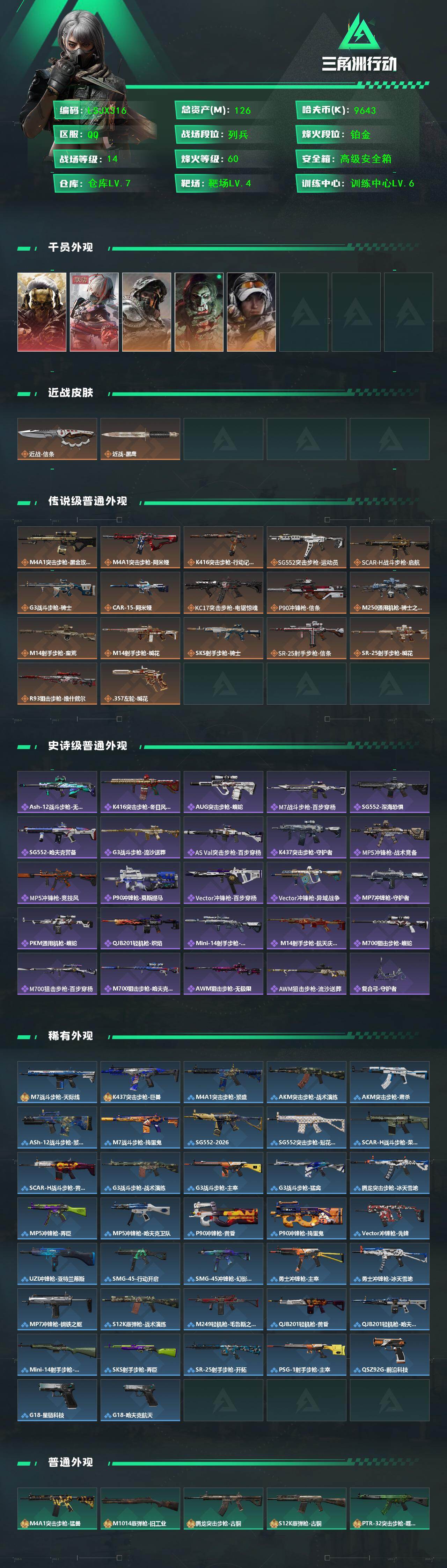 126m总资产-9643k哈伏币-60烽火等级-铂金-14战场等级-列兵【干