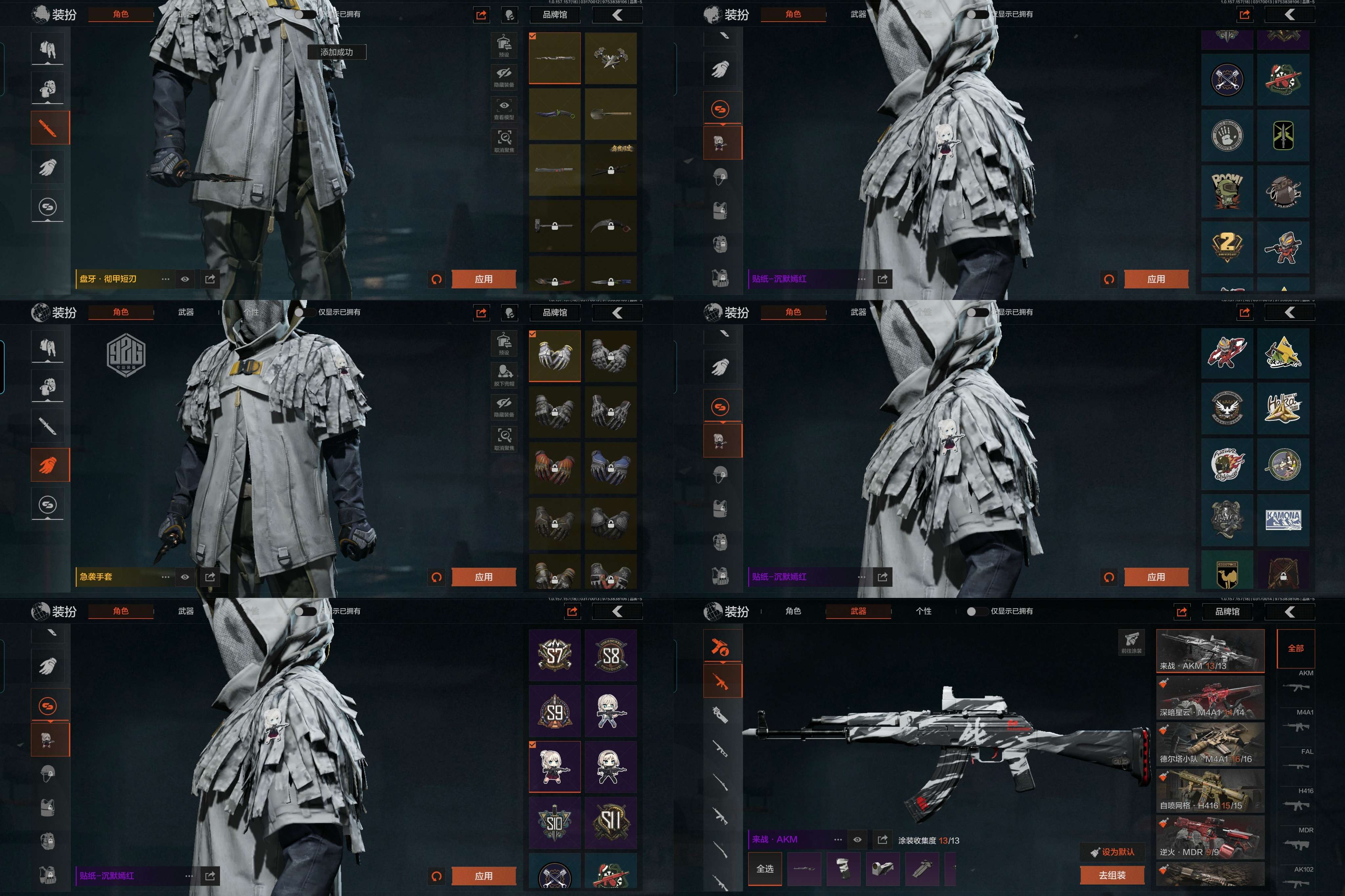 【急袭手套 盘牙·彻甲短刃 急袭弯刀 寒牙手刺 来战·开山刀 苍白隐者·伪装服