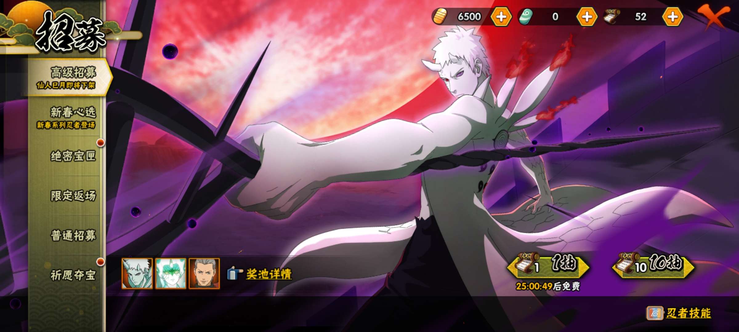 喜欢带土的拍,还有6500金币,50高招卷