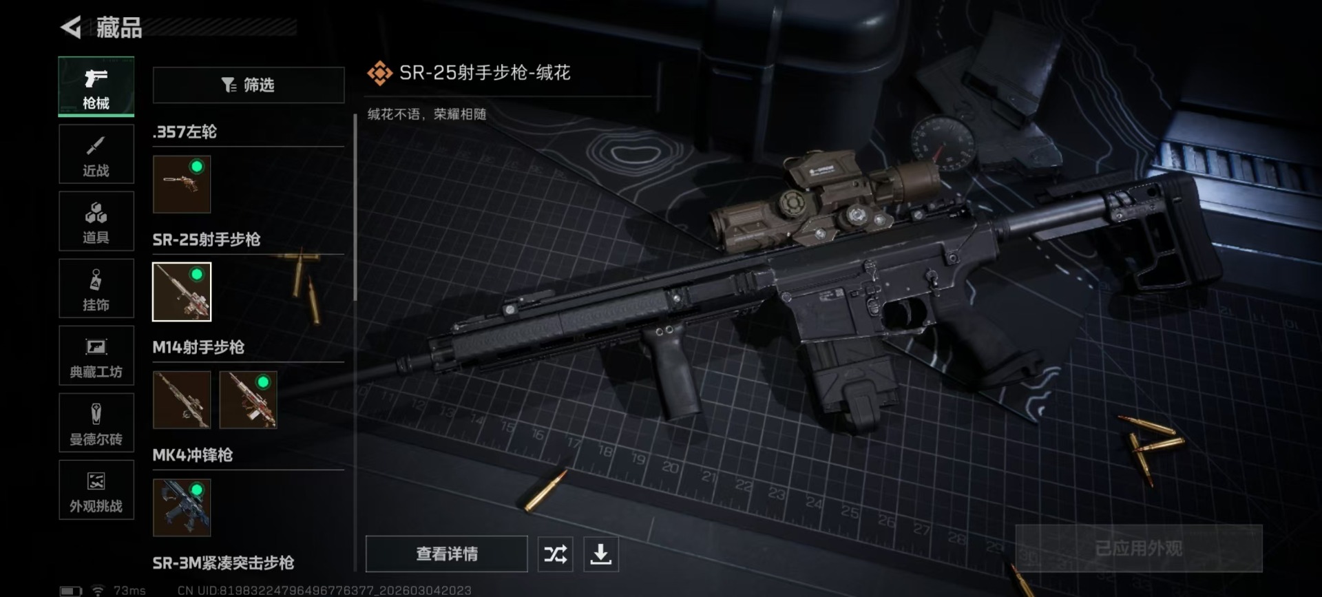 【传说武器皮肤】近战武器-处刑者,近战武器-暗星,SCAR-H战斗步枪-启航,Mini-14射手步枪-夜莺,.357左轮-缄花,SR-25射手步枪-缄花,M14射手步枪-缄花,K437突击步枪-锦绣,Vector冲锋枪-夜莺,MK4冲锋枪-夜莺,MK47突击步枪-暗星,SR-3M紧凑突击步枪-暗星,M