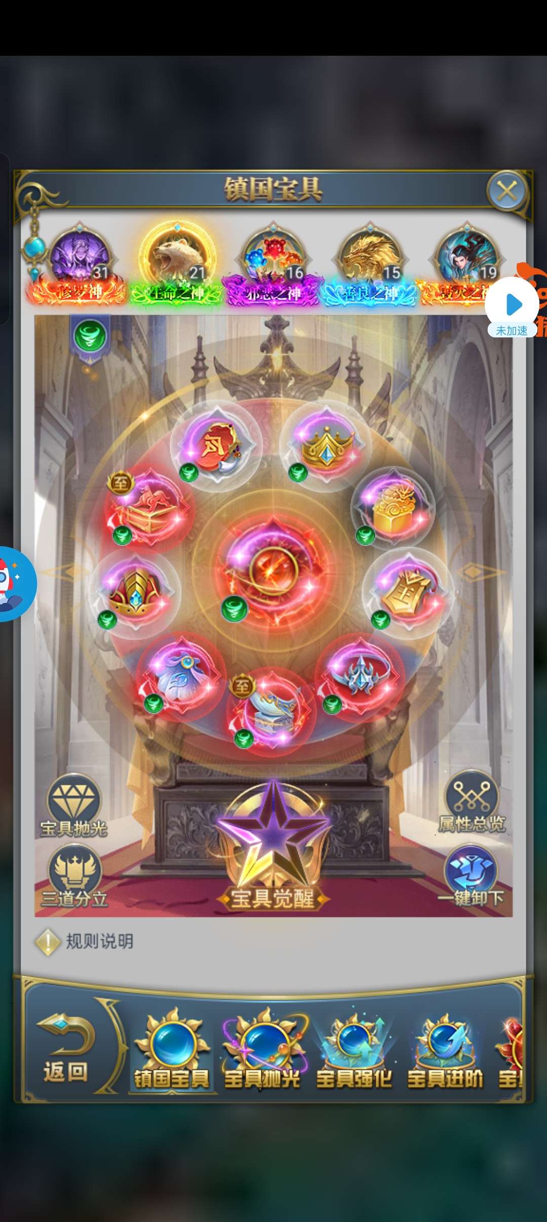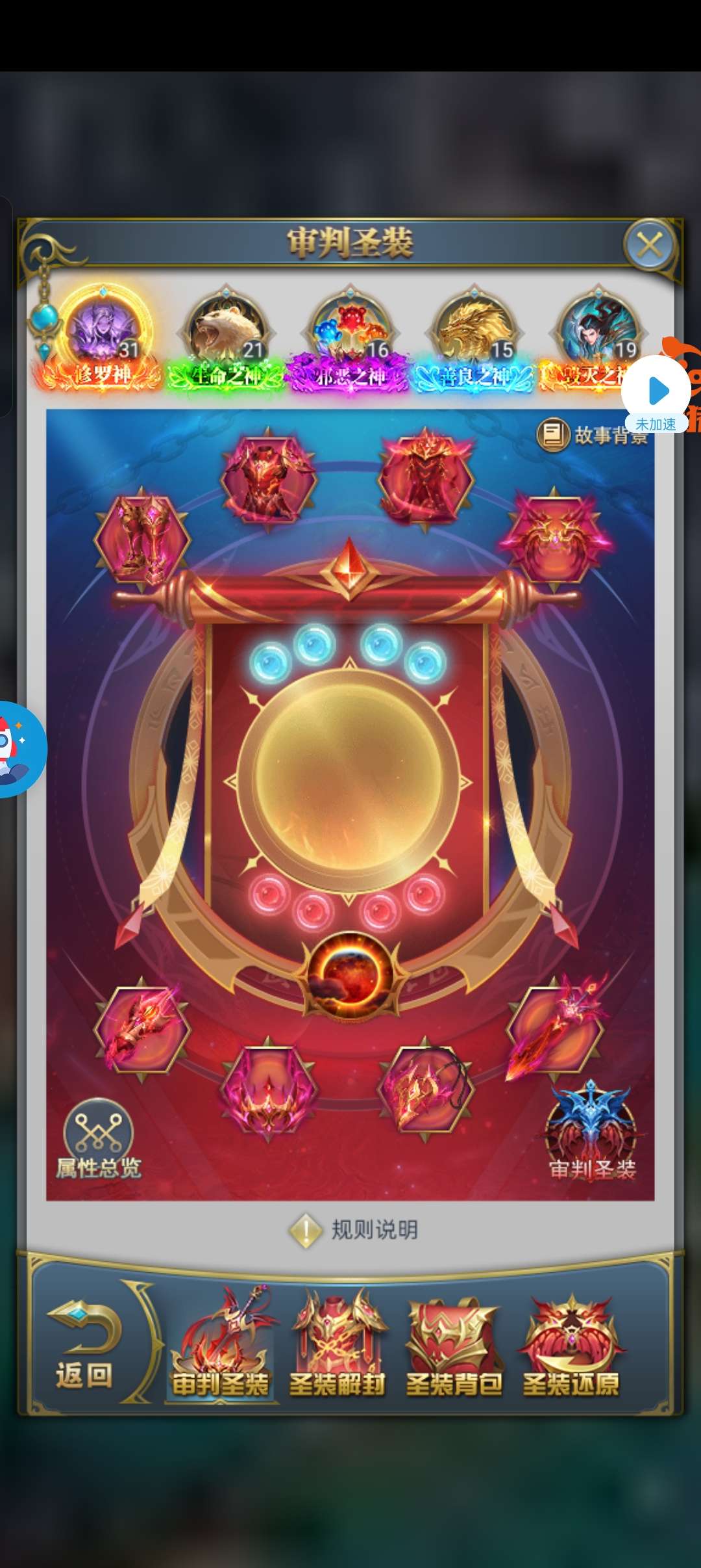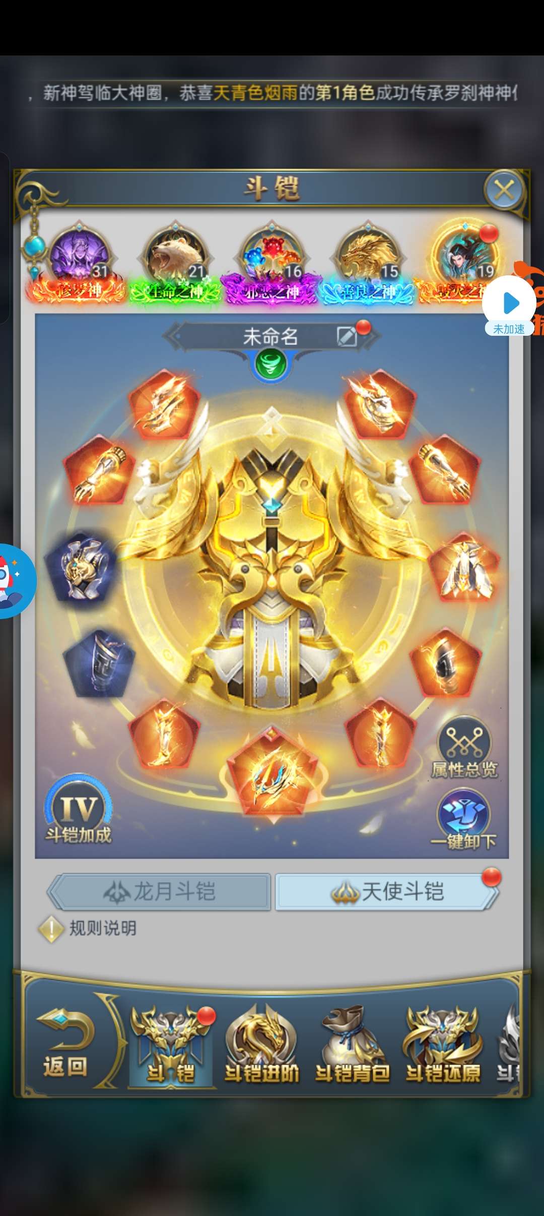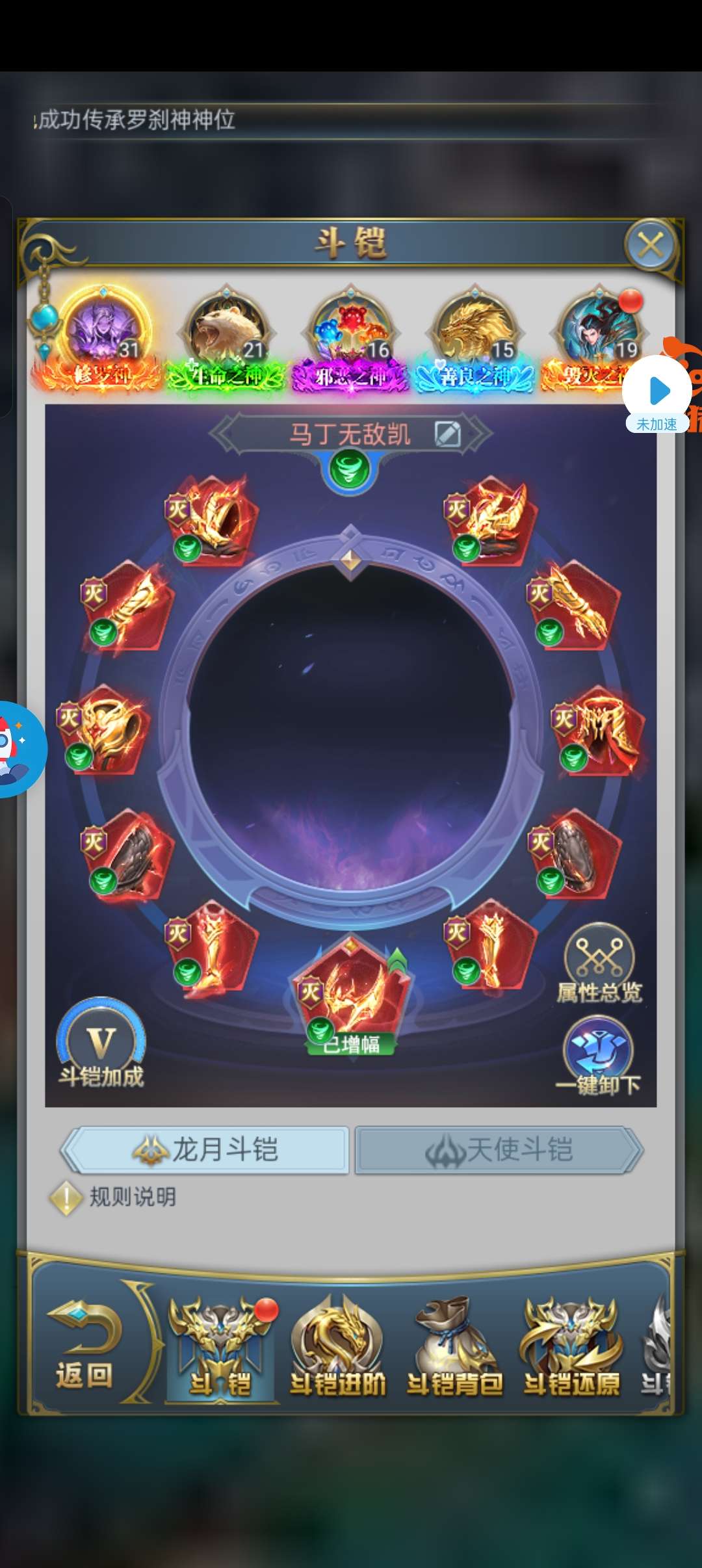 斗铠4套,秘法5套觉醒一套圣物一套宝具,有5套光明,不玩的原因是炸了4个赐福破防了,一个荣耀也没成功