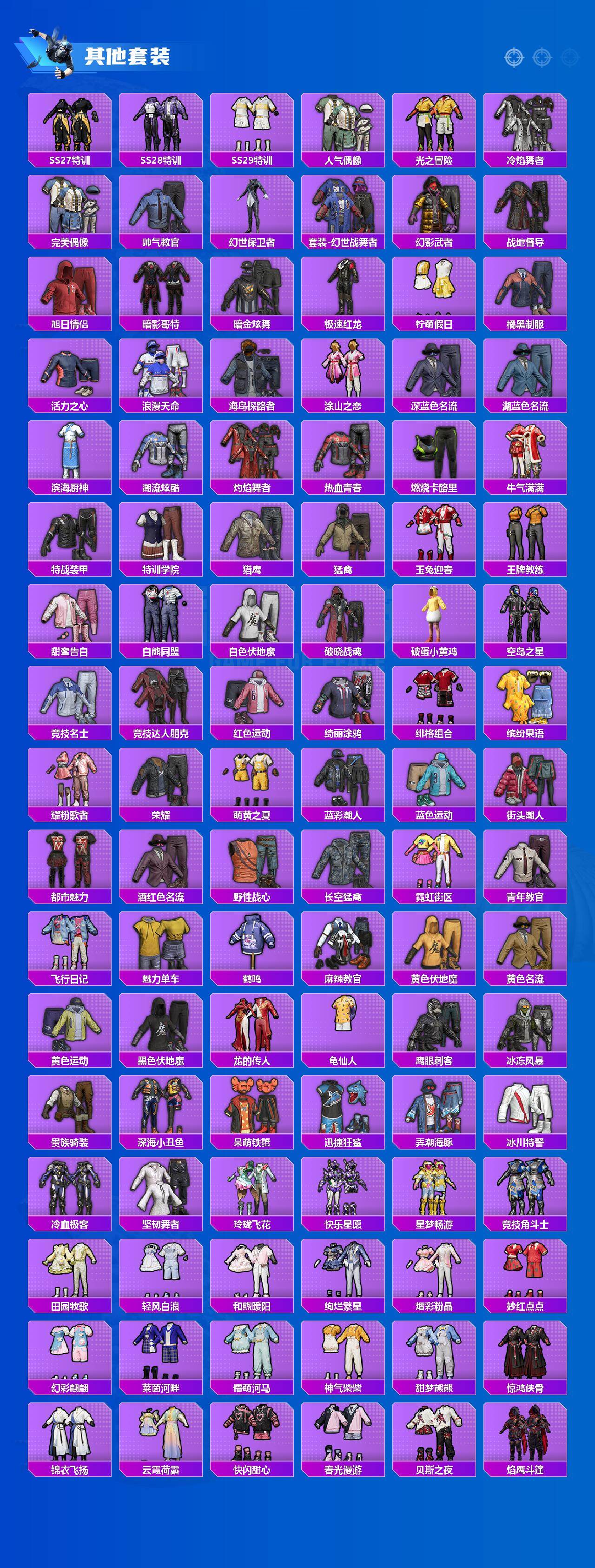 【粉色套装】:粉装-星之彼岸,粉装-第五大道,粉装-炎氏战神,角色-水仙星,套装-创世·救赎,角色-羊梦糖心
