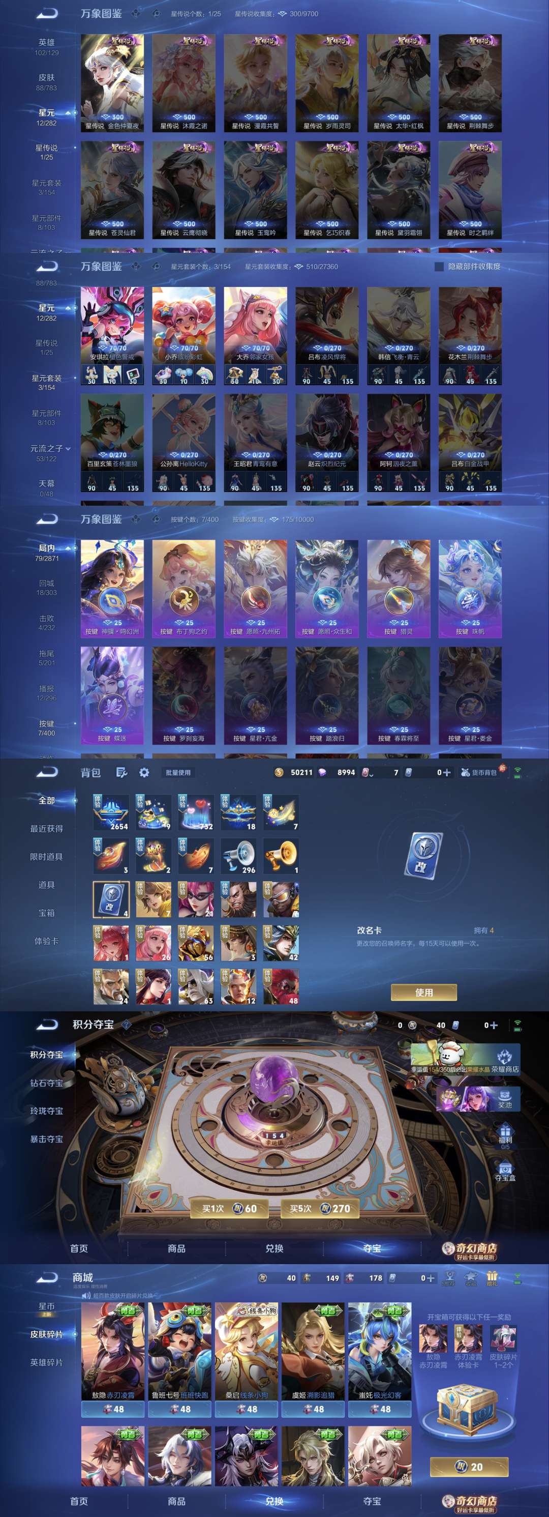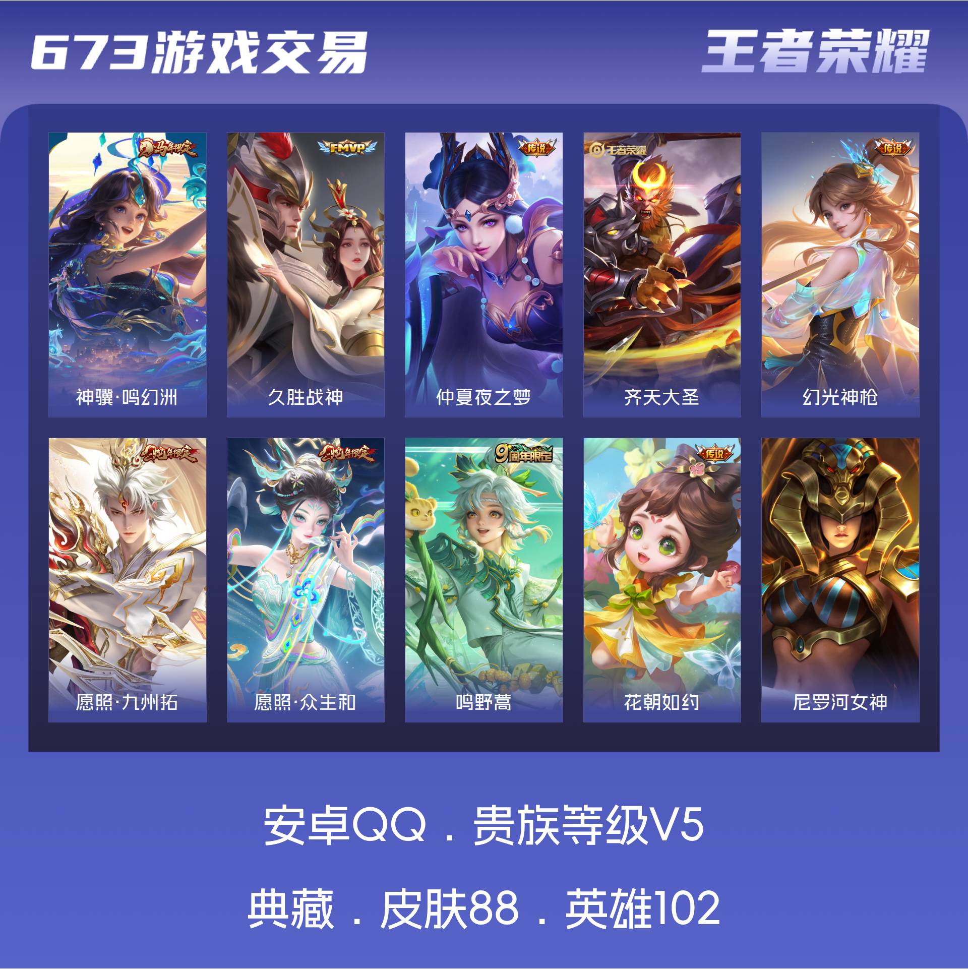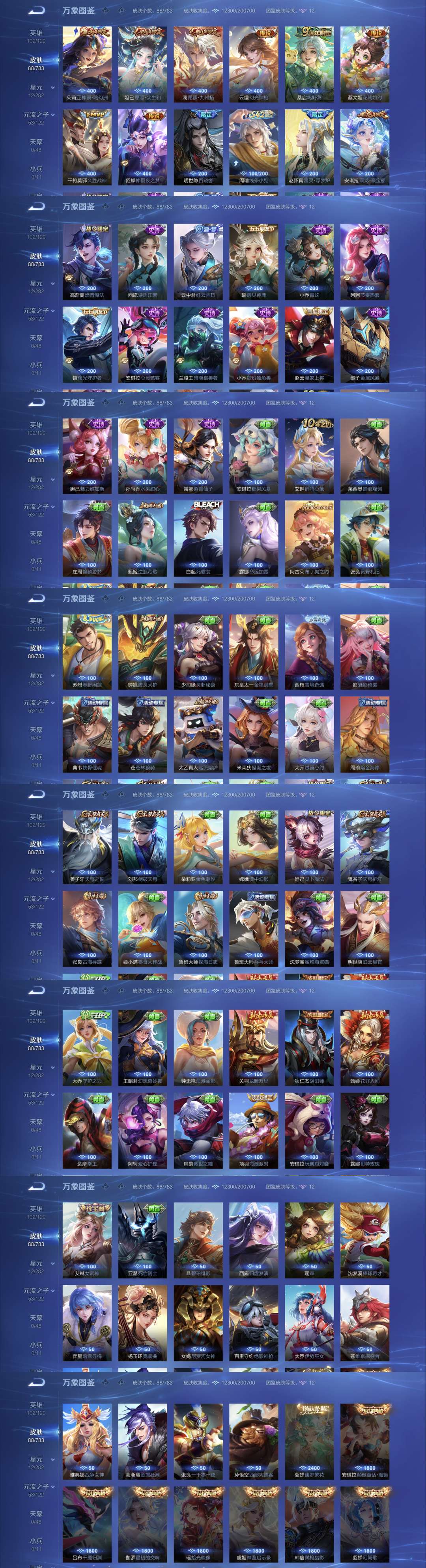 V5 皮肤88 英雄102 永恒钻石 传说9 其他皮肤85