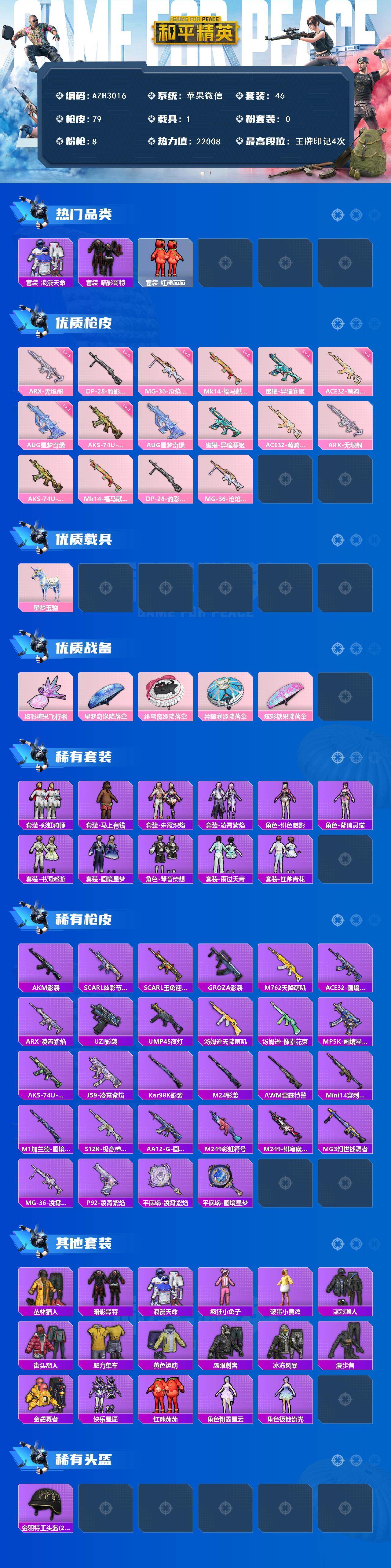 【AZH3016】苹果 微信【红熊茄茄暗影哥特浪漫天命 星梦奇缘AUG 1载具】0粉装-8特效枪-1载具-1粉色飞行器-22008热力值-4王牌印记-46套装-79枪皮