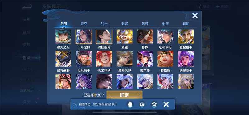 【英雄全皮】:元歌全皮,李白全皮,孙权全皮,鬼谷子全皮,猪八戒全皮,敖隐全皮,司空震全皮,戈娅全皮,空空儿全皮,影全皮,海诺全皮