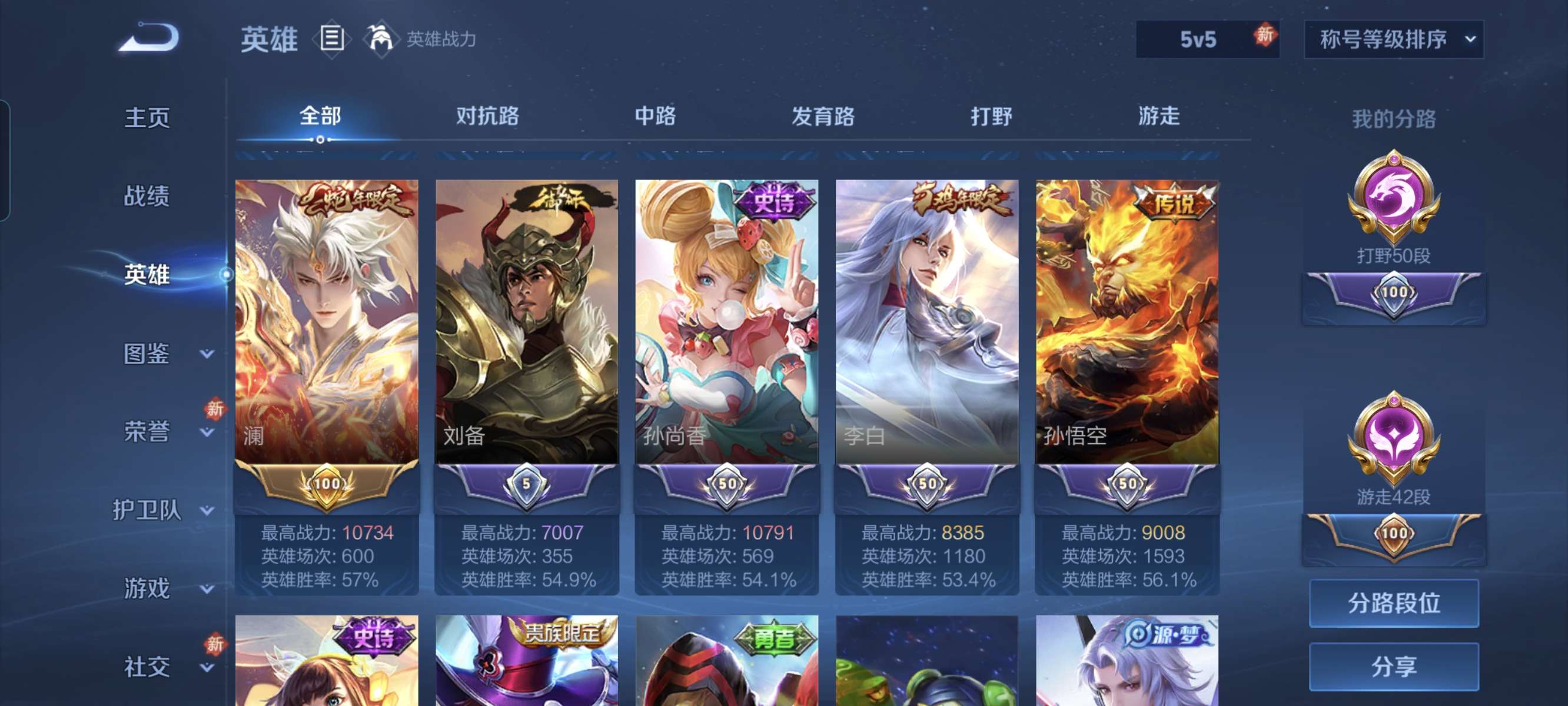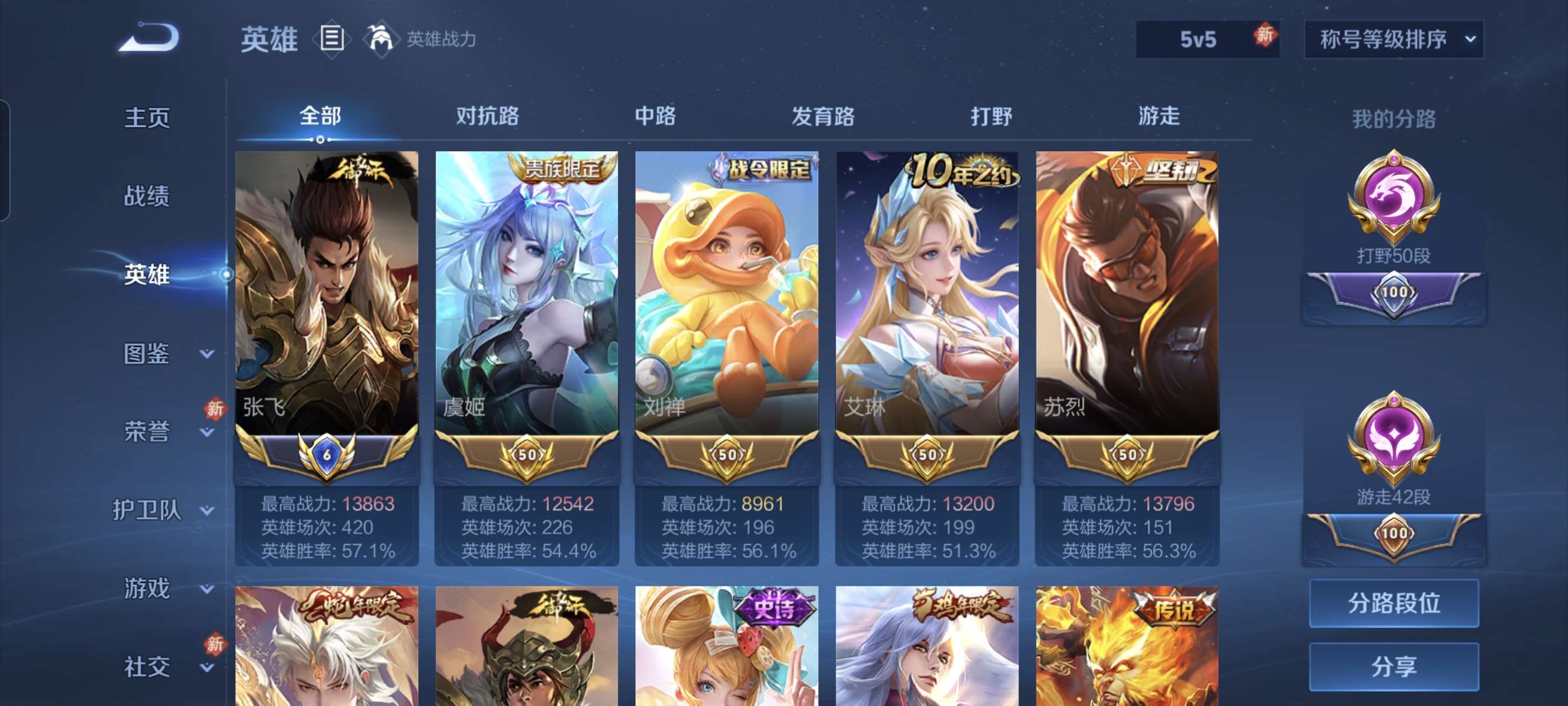小国张飞还有很多市标绝对值可二次打野50段,全能大师贵8