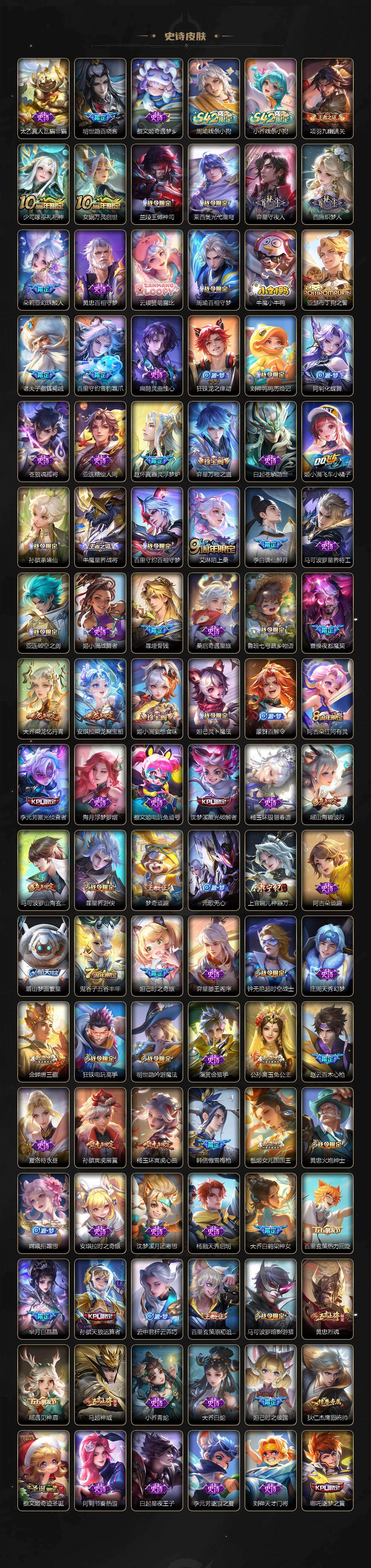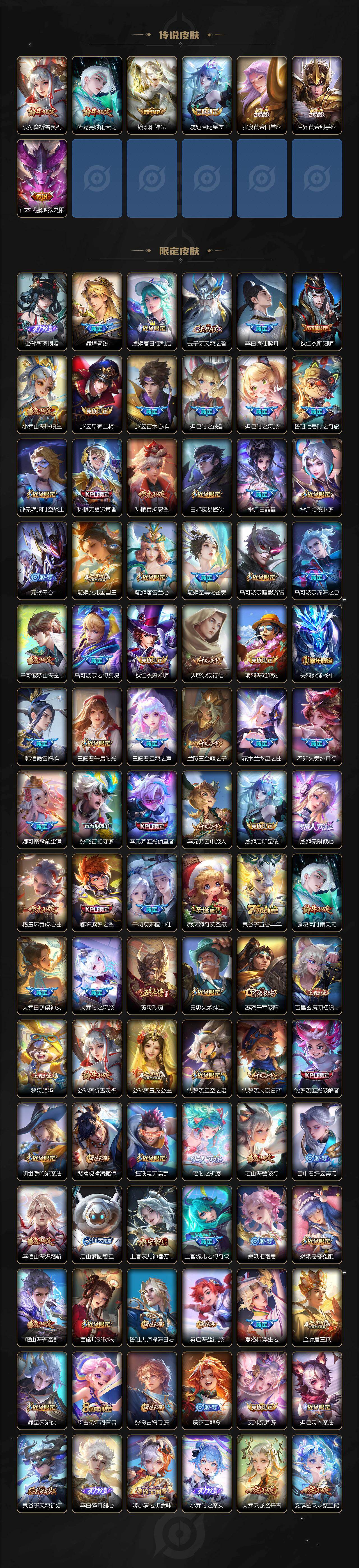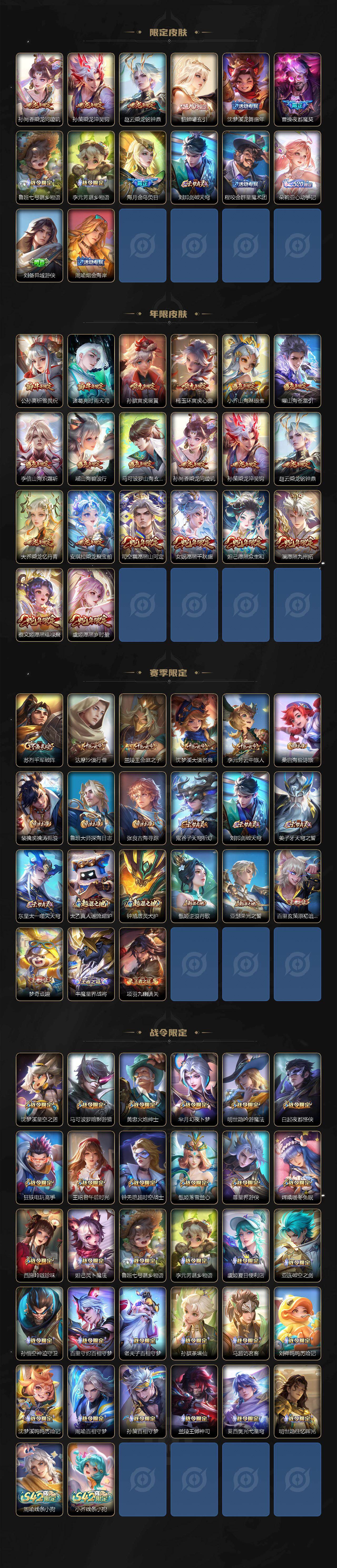 【英雄全皮】:孙权全皮,朵莉亚全皮,苍全皮,沈梦溪全皮,瑶全皮,敖隐全皮,海月全皮,澜全皮,阿古朵全皮,桑启全皮,夏洛特全皮,金蝉全皮,暃全皮,空空儿全皮,影全皮,姬小满全皮