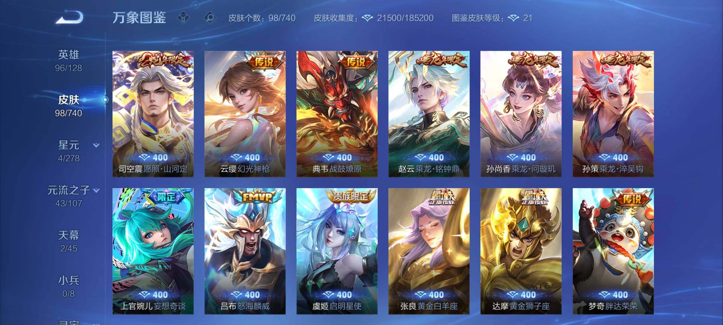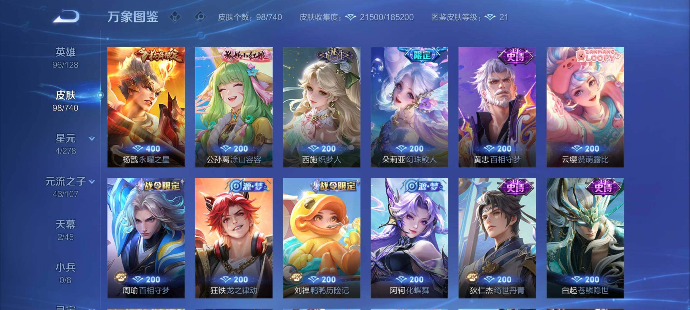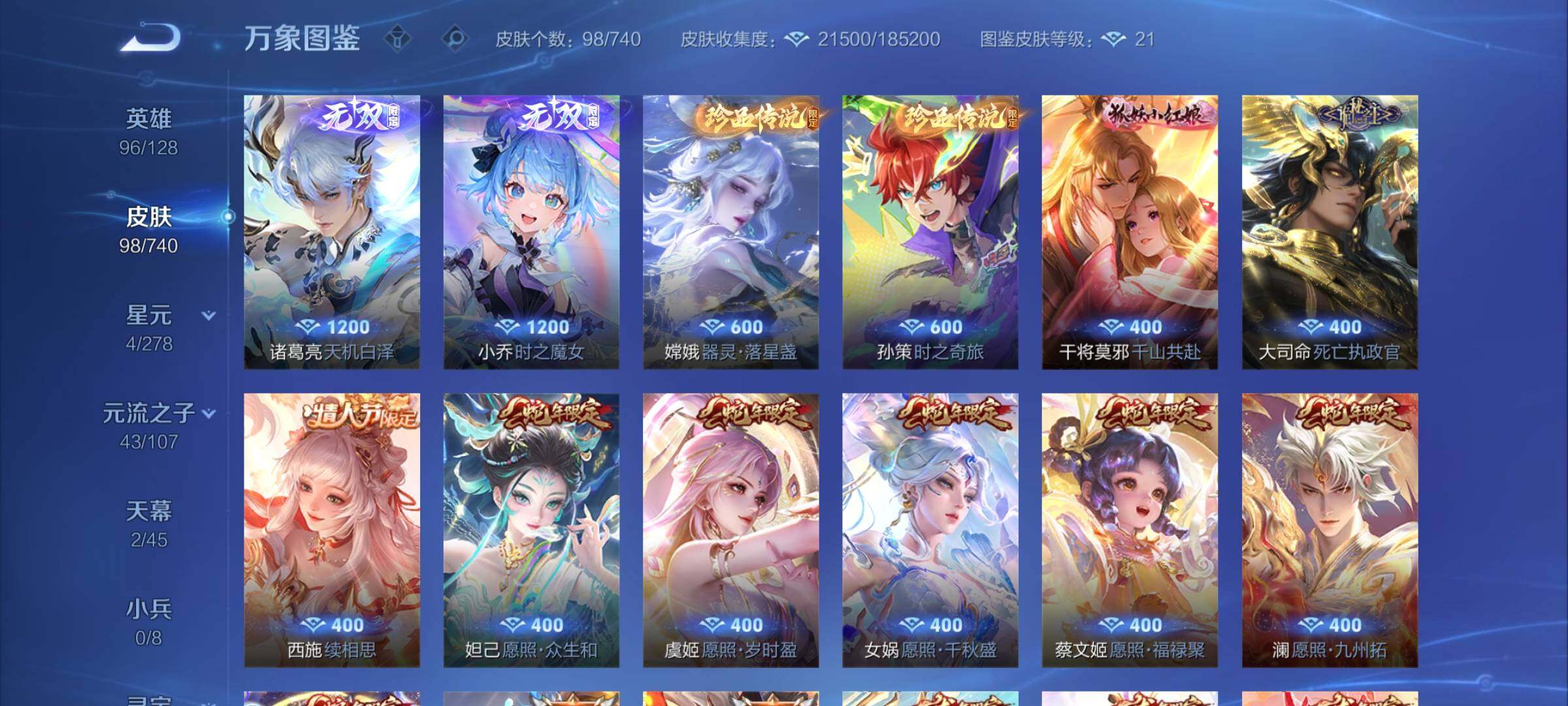 【蛇年套,无双小乔诸葛亮,多限定店长推荐】 2天幕 38按键 2王者印记 五级