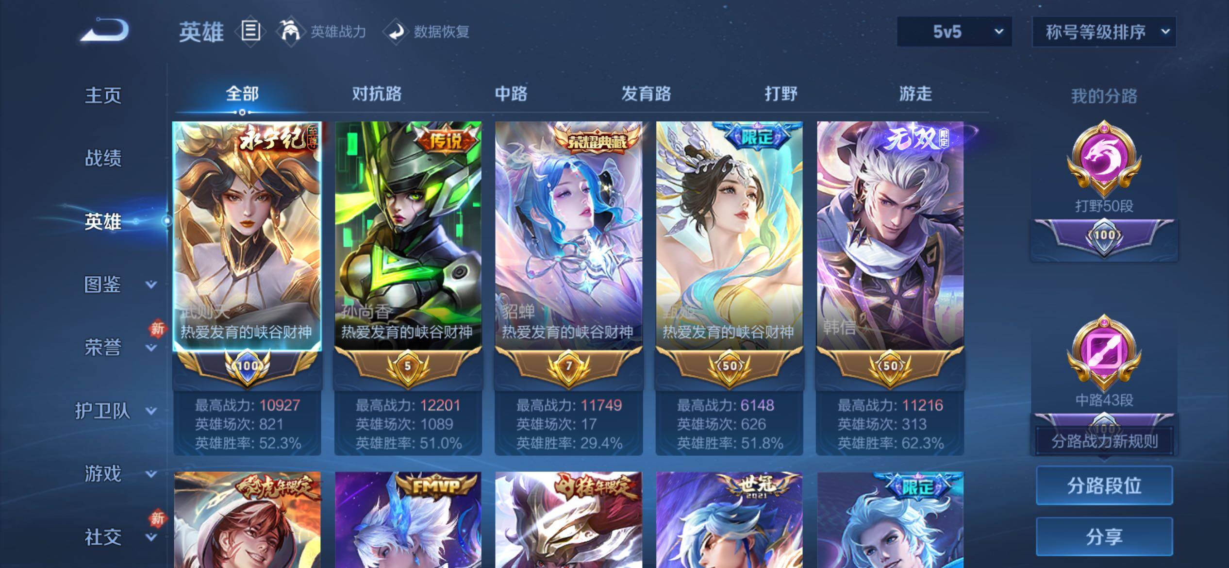 /可换绑【店铺周年庆特价V10号·小国标武则天·孙尚香金标1.22万·韩信金标1.12万·貂蝉金标1.17万·打野50段·中路43段·孙尚香全皮·10典藏含武则天英雄·金虎啸春天幕,挚爱童话天幕,秋月华灯天幕】321幸运值,486戳戳,4星传说,3天幕,21按键,21王者印记,160五级铭文,可二次BX4210,苹果Q-V10-517皮肤-9典藏皮肤-1典藏英雄-4无