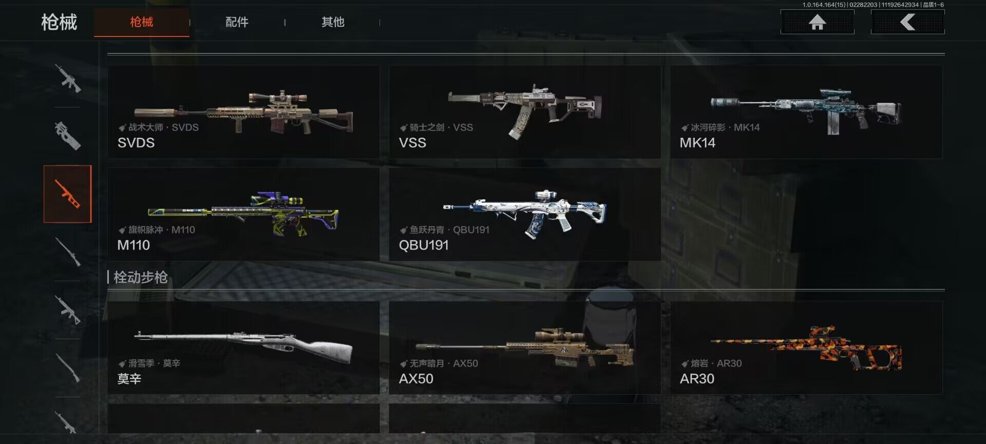 【AQQH705】等级:30/段位:王牌/仓库价值(百万):1.1/柯恩币:739622/冬日冰镐/工兵铲/冥河/深潜行者II/冰河碎影MK14/旧王圣谕VSS/玉擎天工AN94/骑士之剑VSS