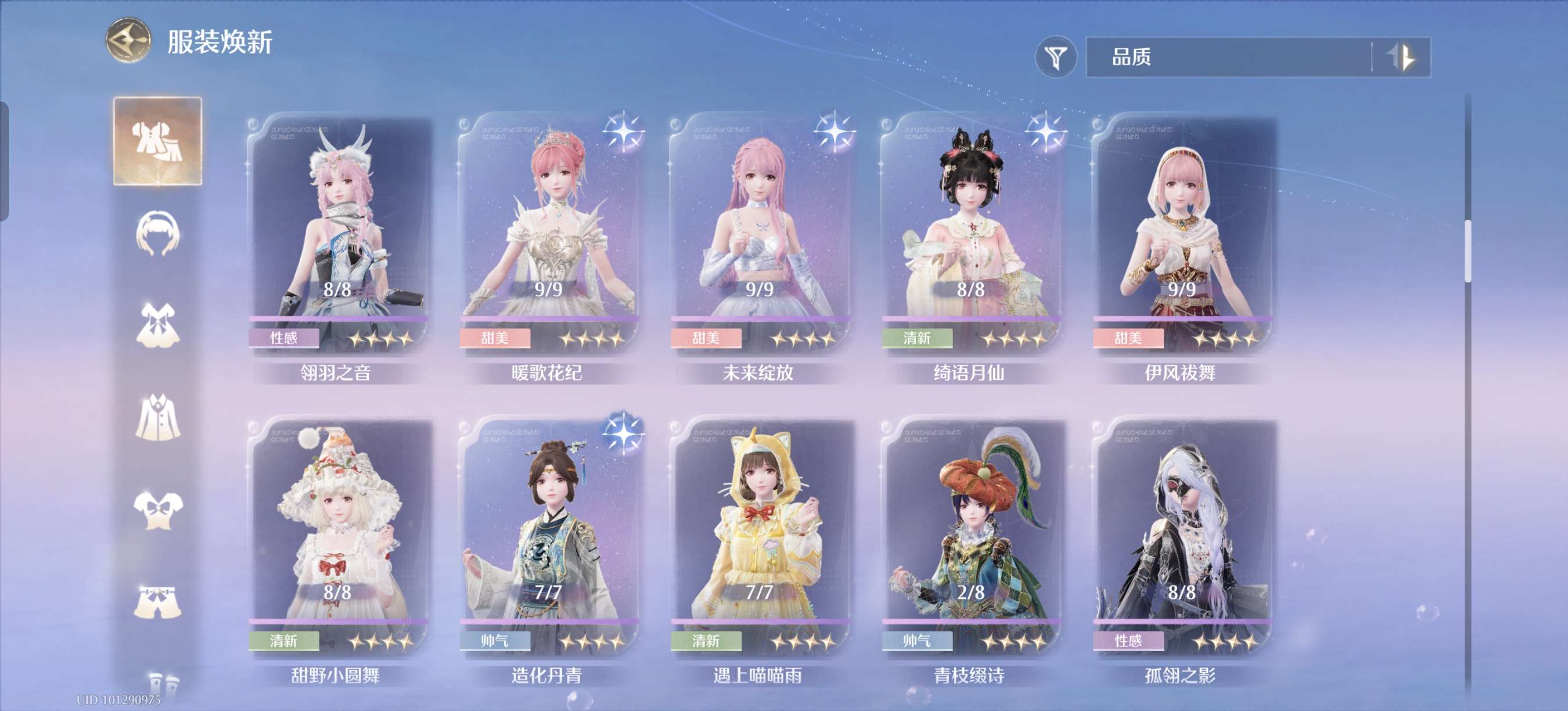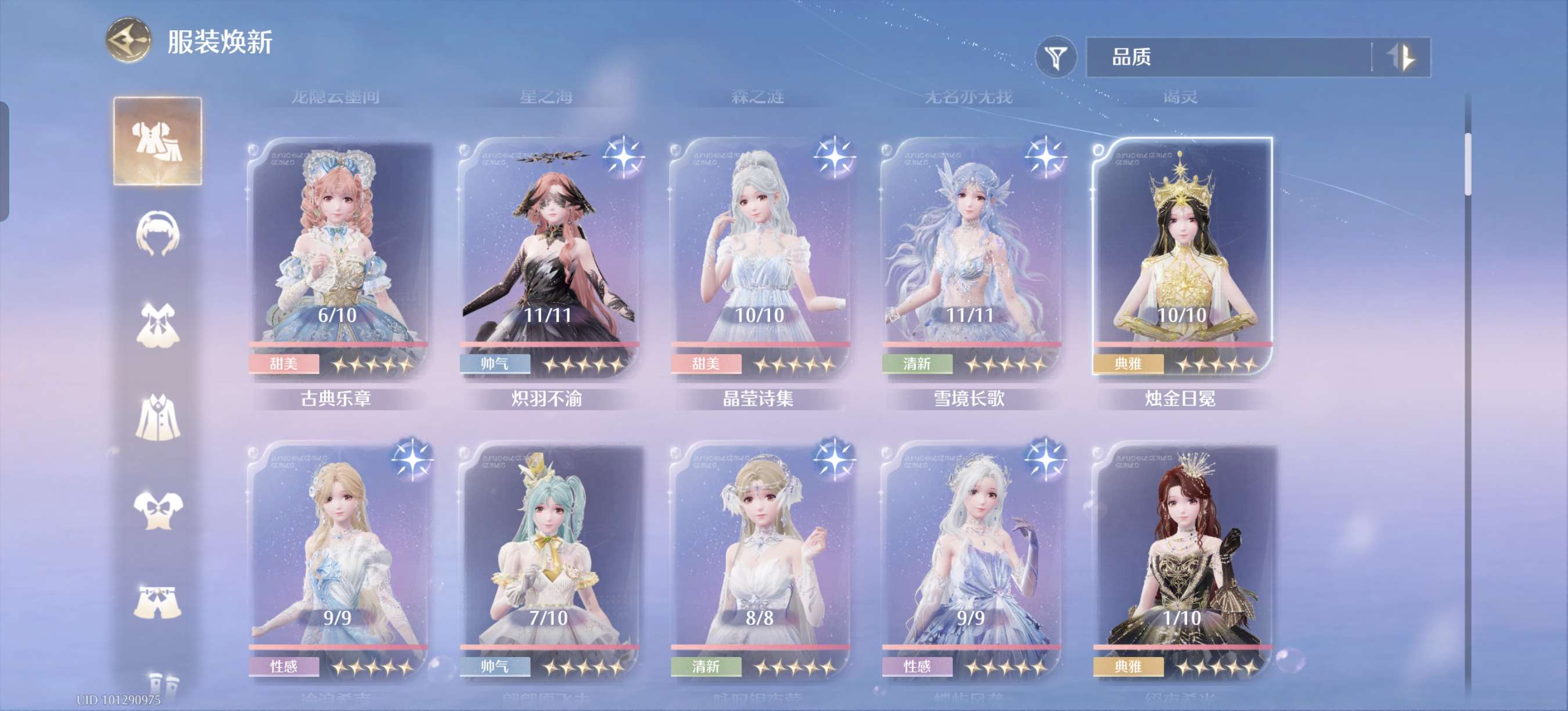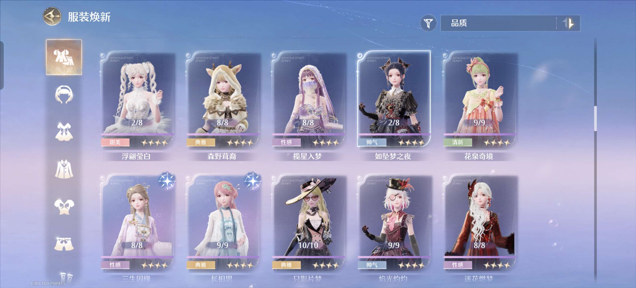 蝴蝶套满进,其余有的五星几乎一进,有些五星想补全比较好补