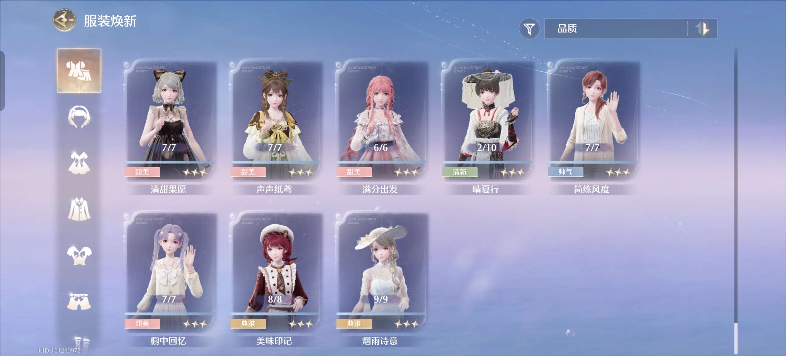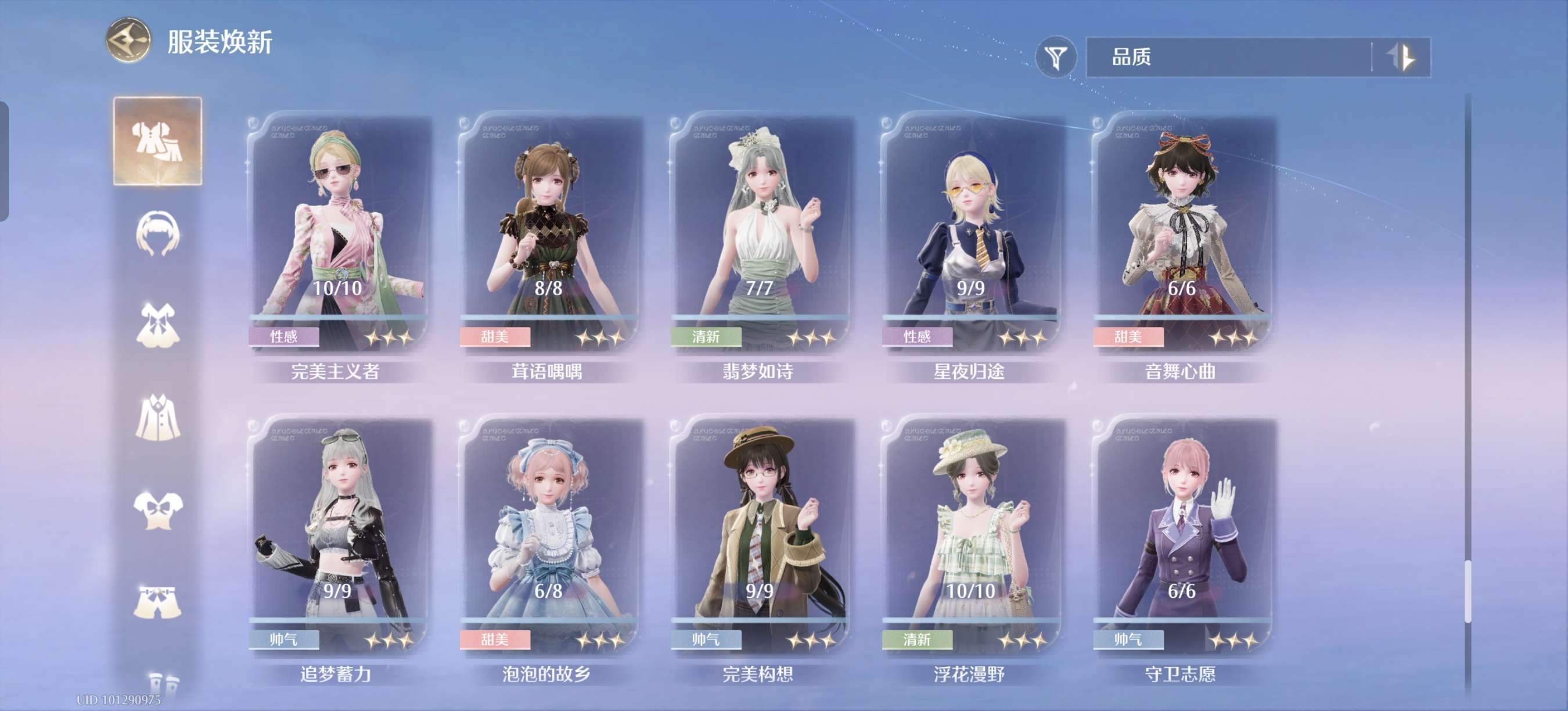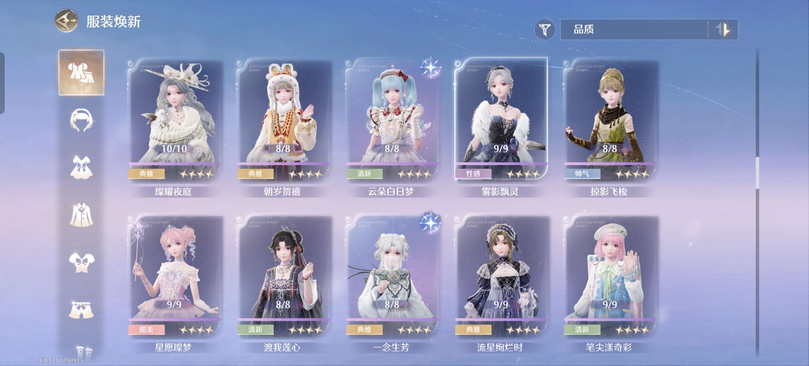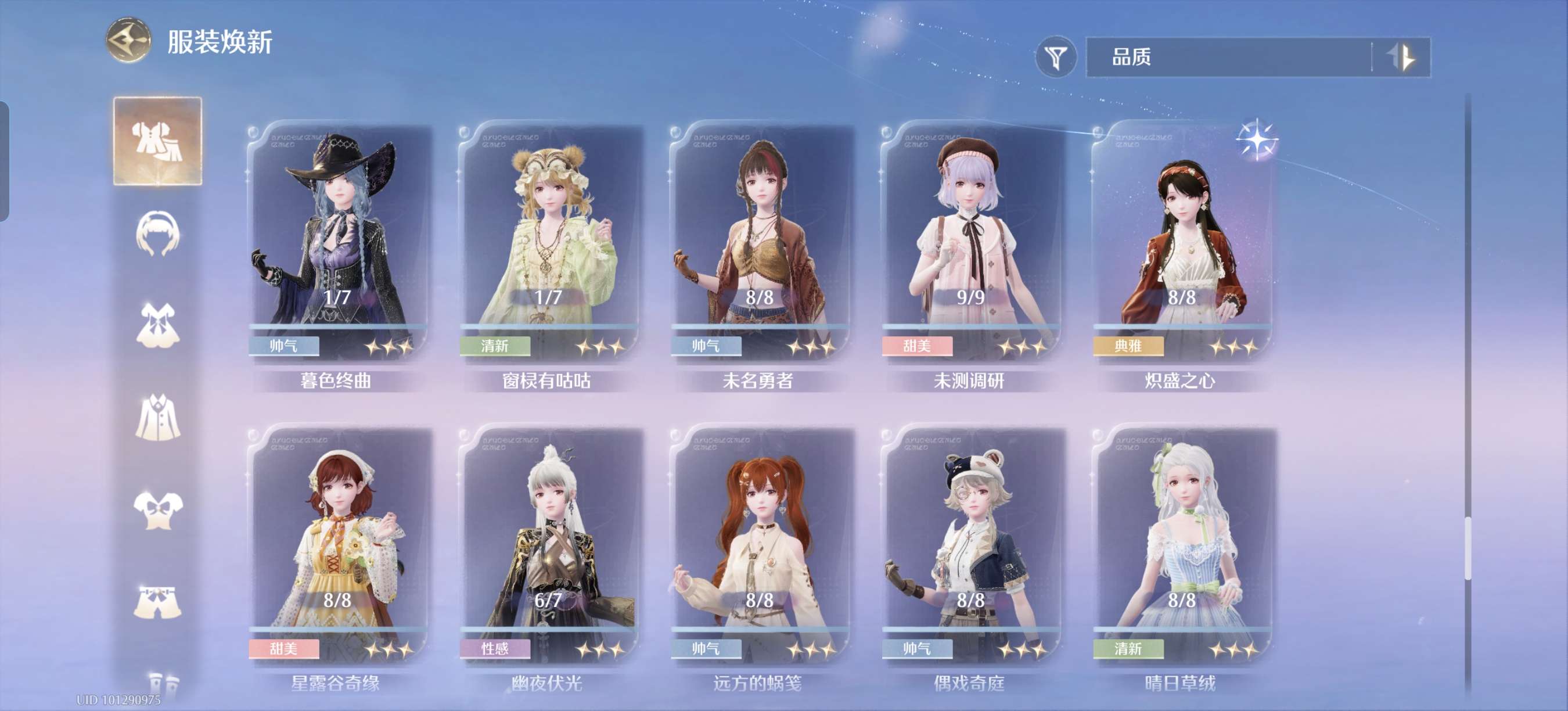蝴蝶套满进,其余有的五星几乎一进,有些五星想补全比较好补
