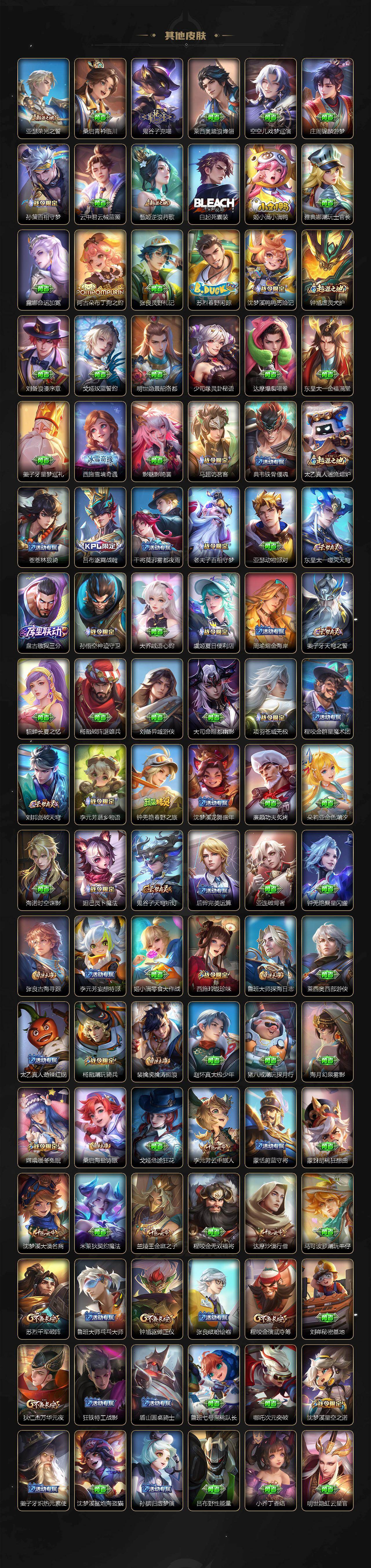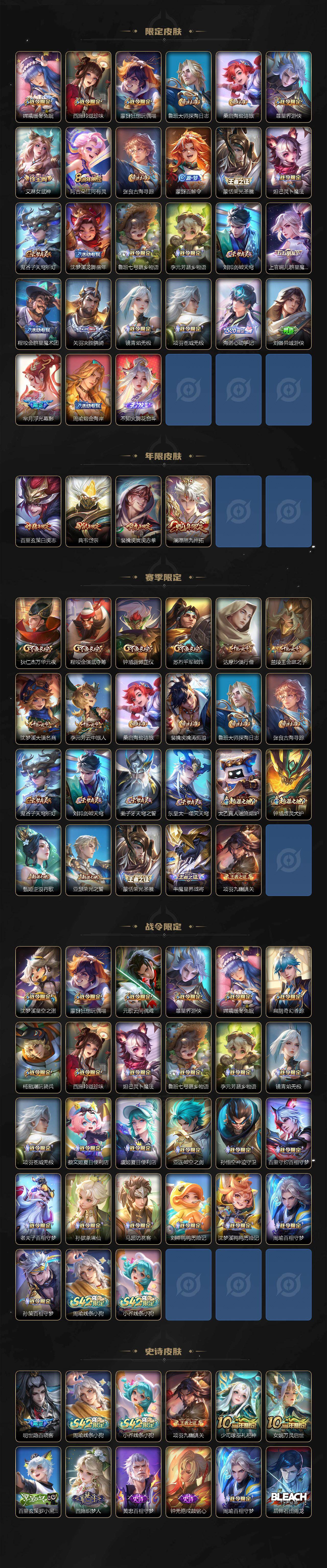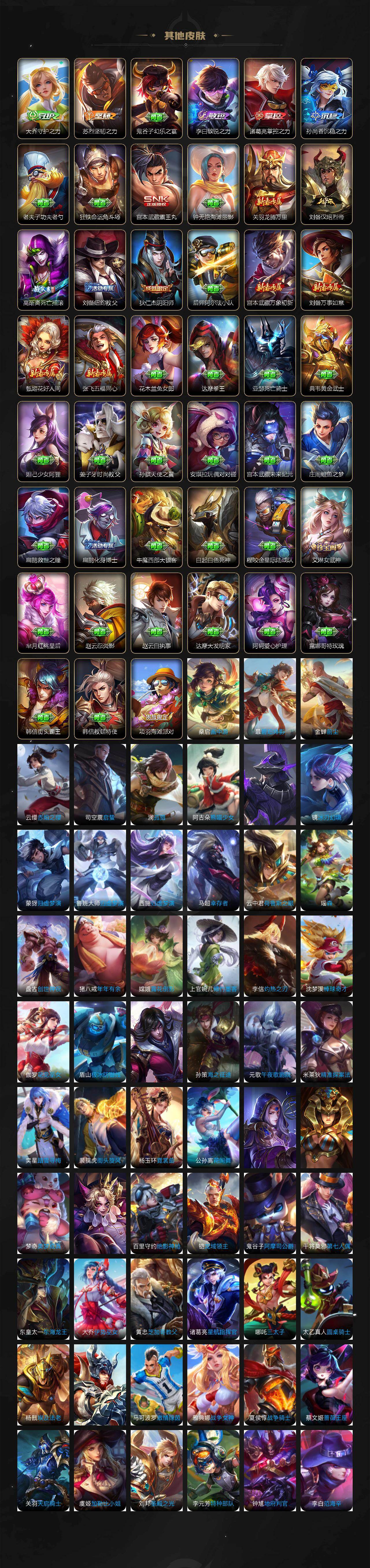 【英雄全皮】:孙权全皮,敖隐全皮,蒙恬全皮,暃全皮,空空儿全皮,影全皮,海诺全皮