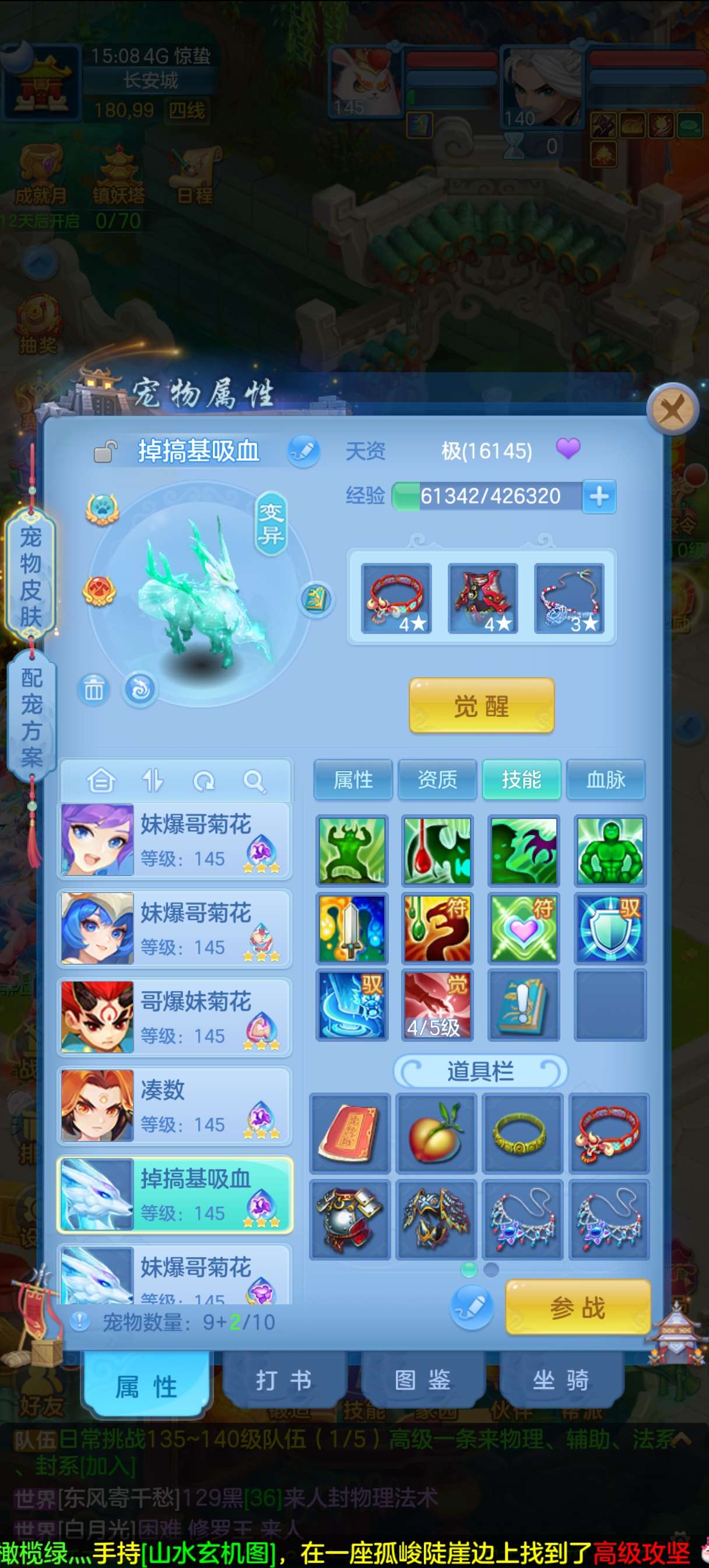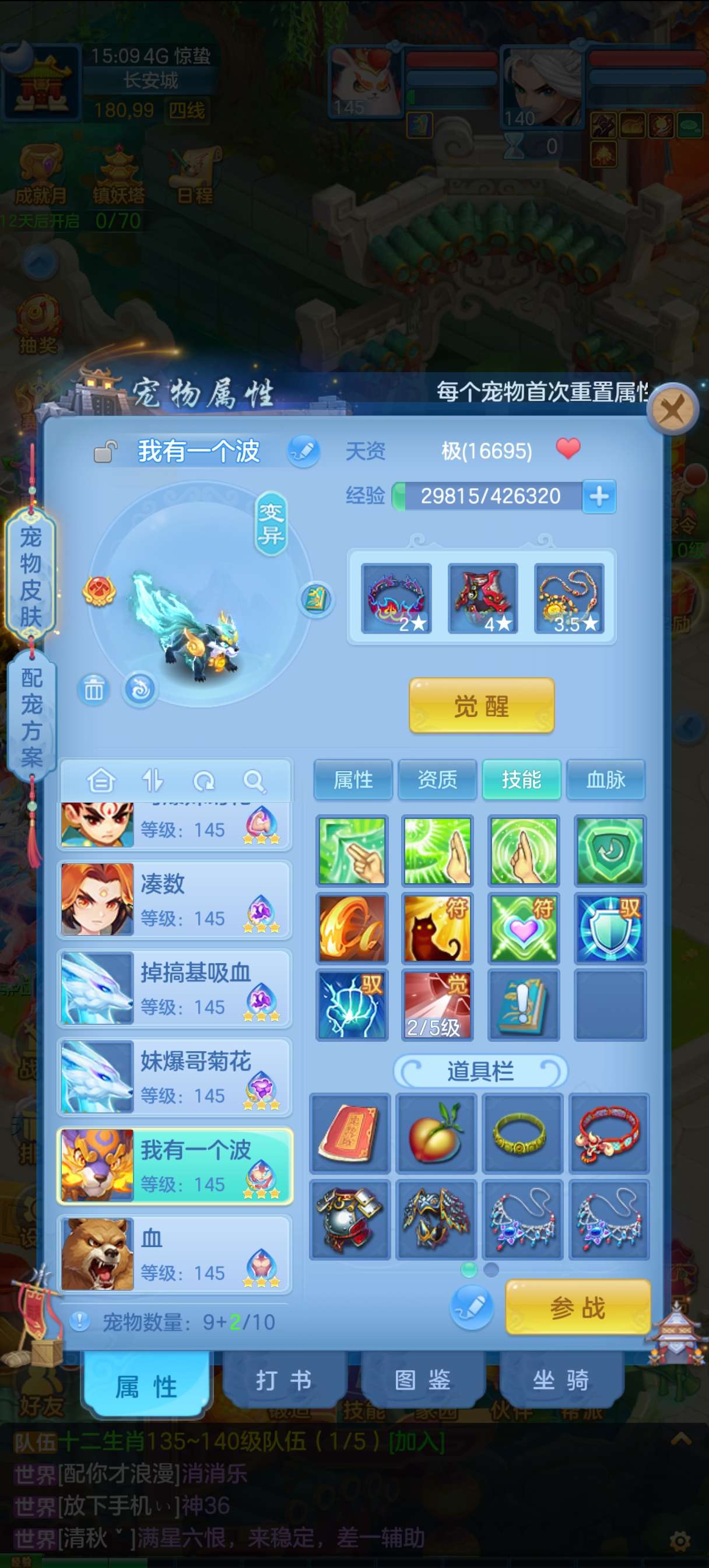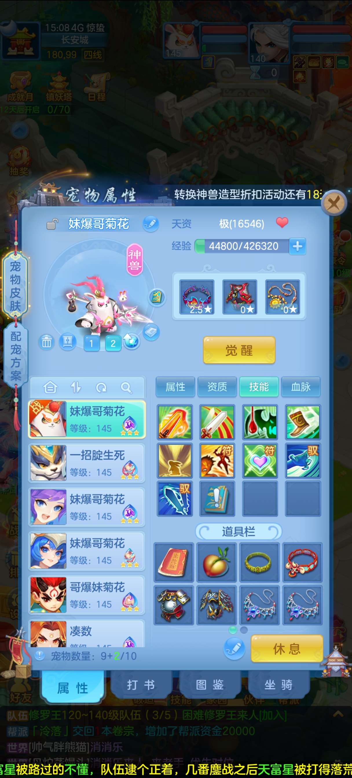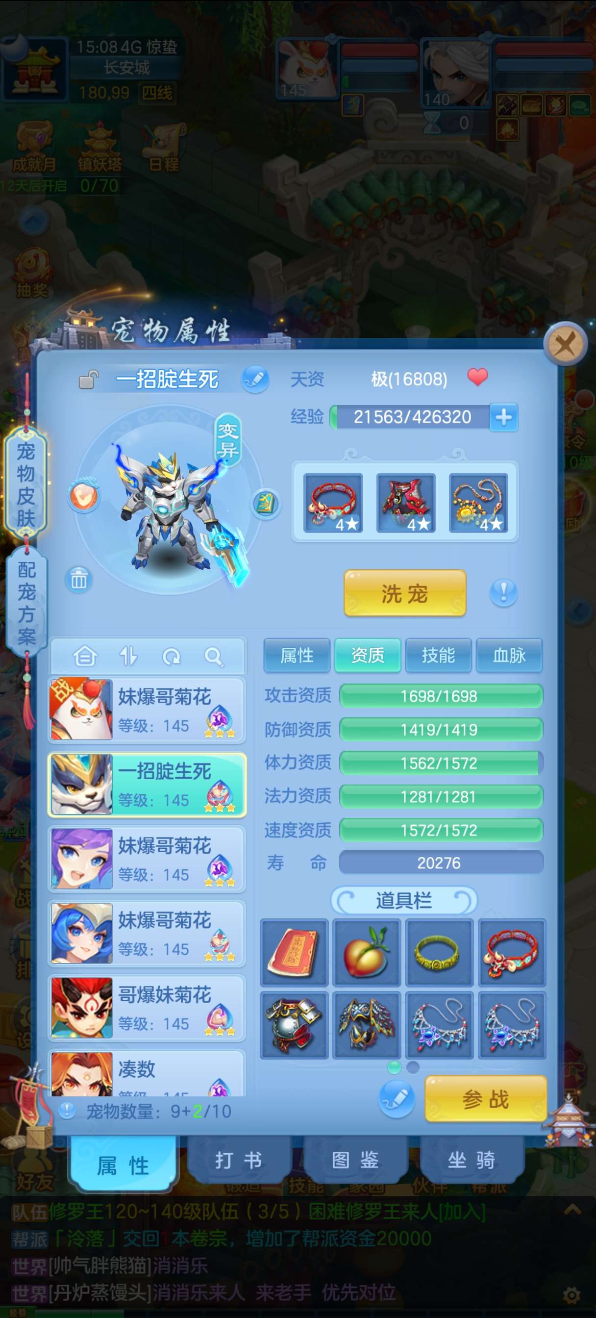 神一条随便打,满级千速方寸。各种炸资质宝宝,神兽