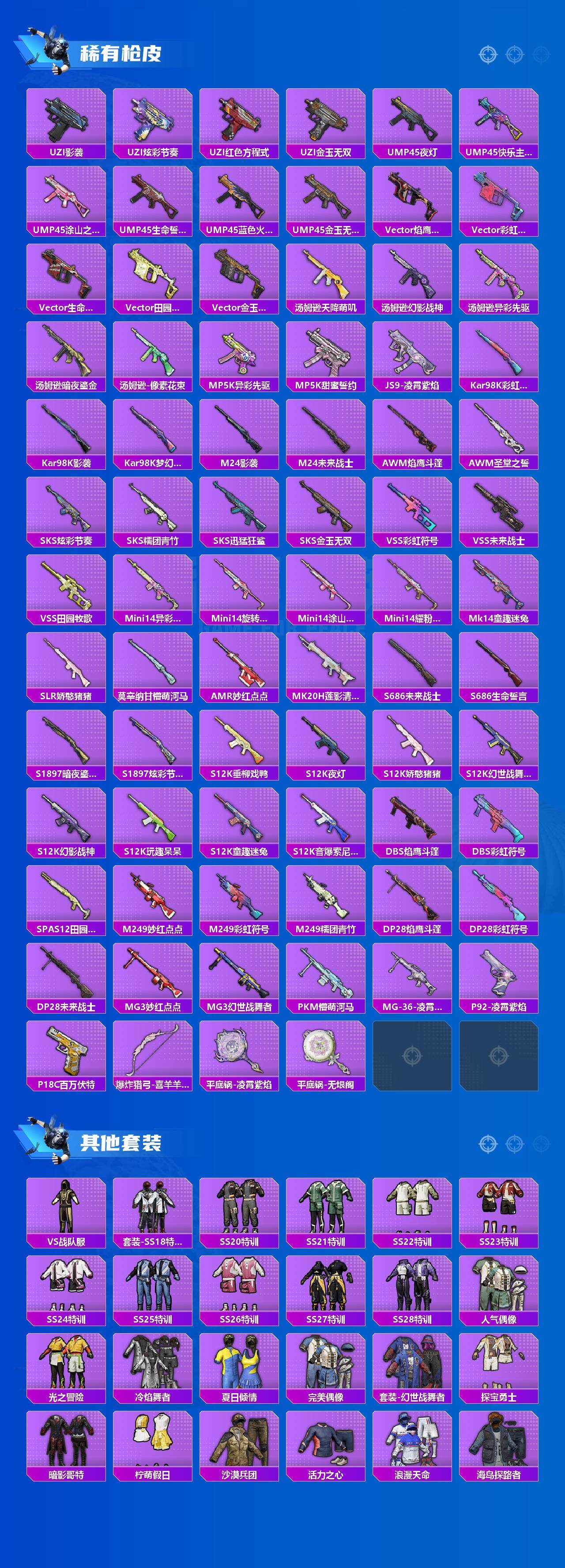 【A7862】苹果【素材号 怪诞乔克/梦幻火箭/都市猎人/暗影哥特/角色-零号机款机体服/M416-至情至圣(九级)/蜜獾-异瞳寒姬(四级)】 手Q-无敌战神框-12粉装-7特效枪-0载具-1粉色飞行器-58777热力值-13王牌印记-151套装-191枪皮