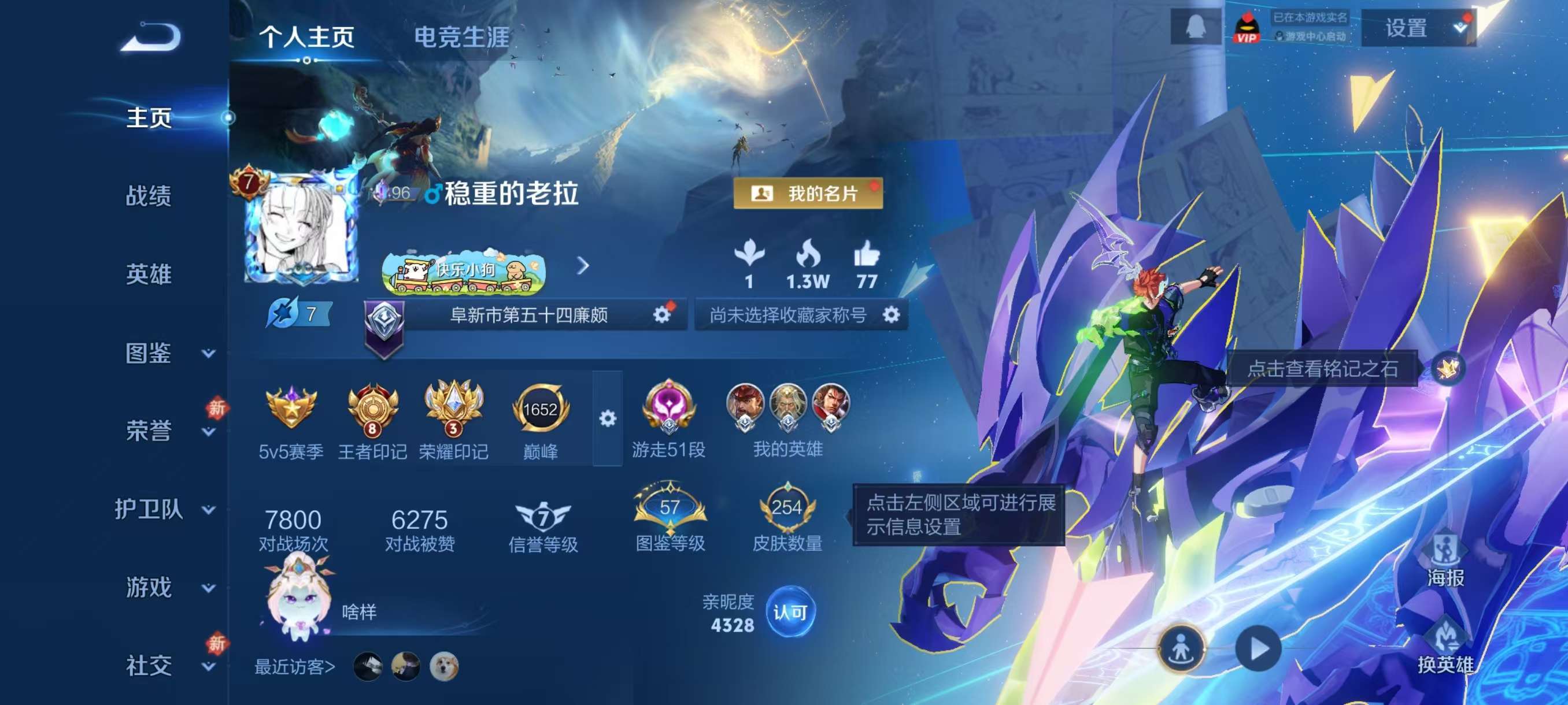 安卓QQ/至圣王者/254皮肤/127英雄/1典藏/0珍品无双/0无双/3珍品传说/7传说/75史诗