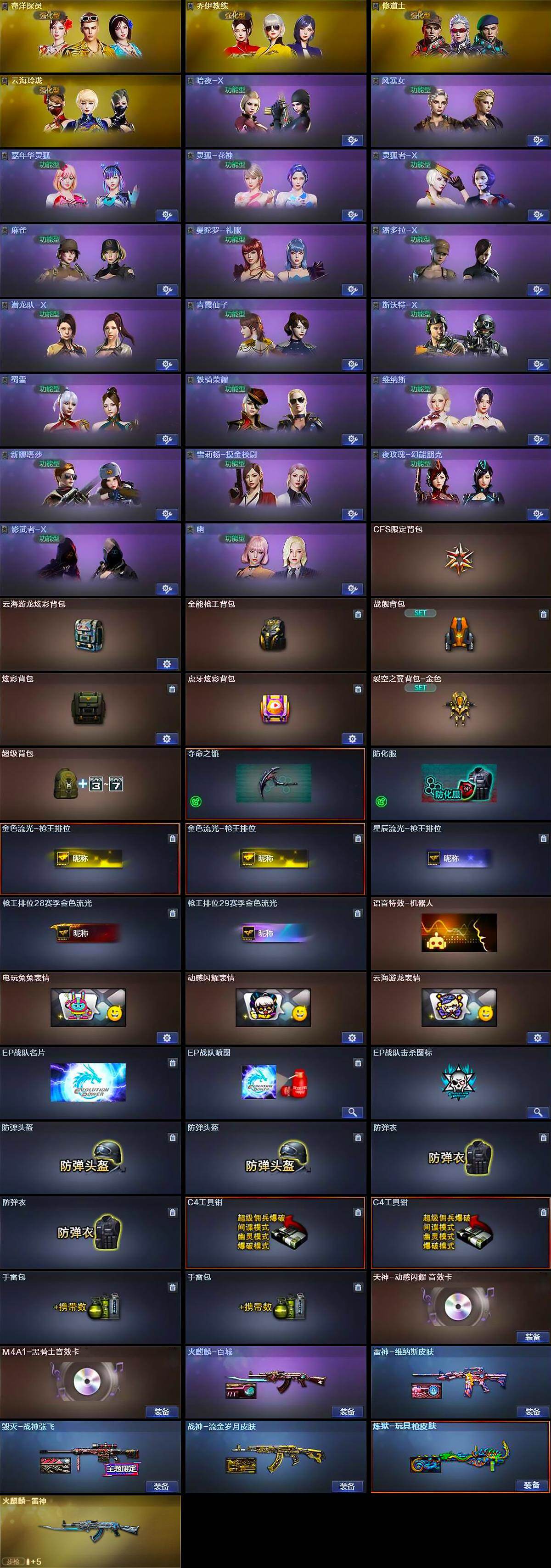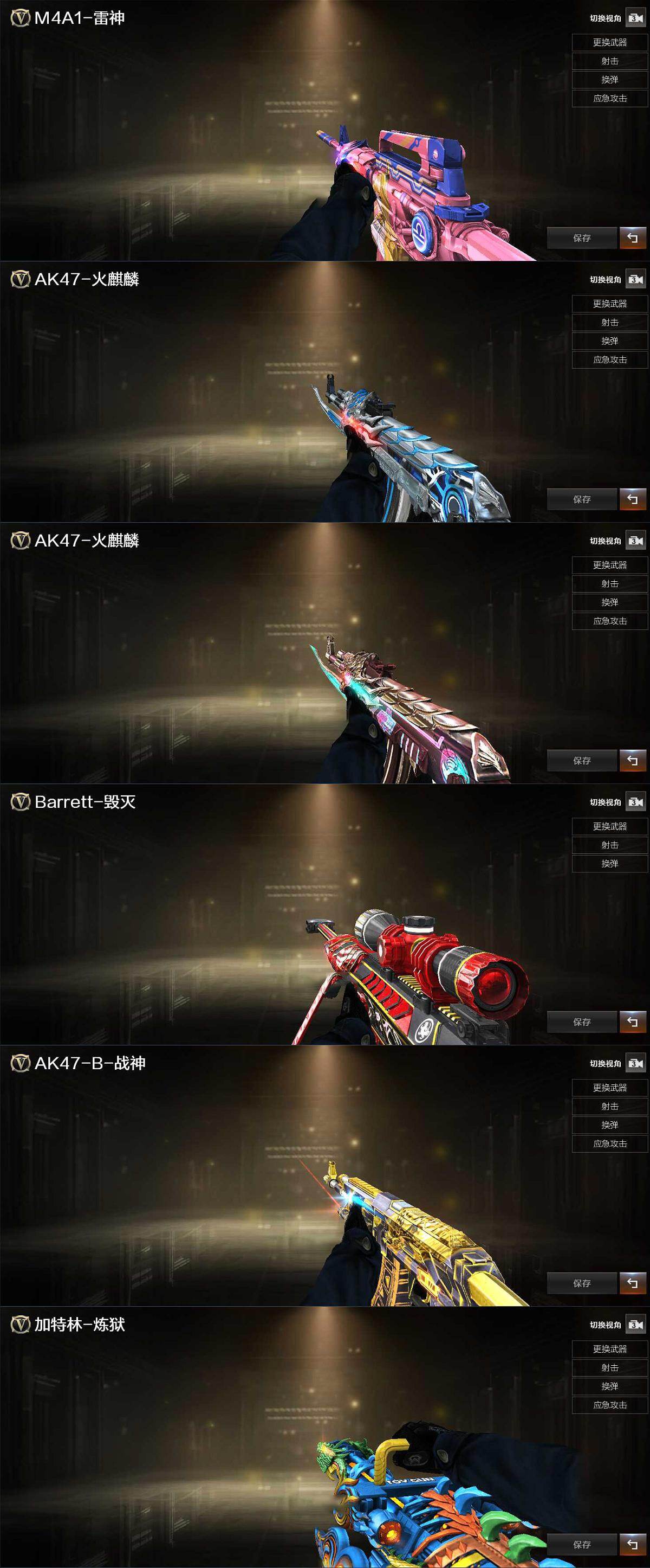 【皮肤】:雷神-维纳斯皮肤,火麒麟-雷神,火麒麟-百城,毁灭-战神张飞,战神-流金岁月皮肤,炼狱-玩具枪皮