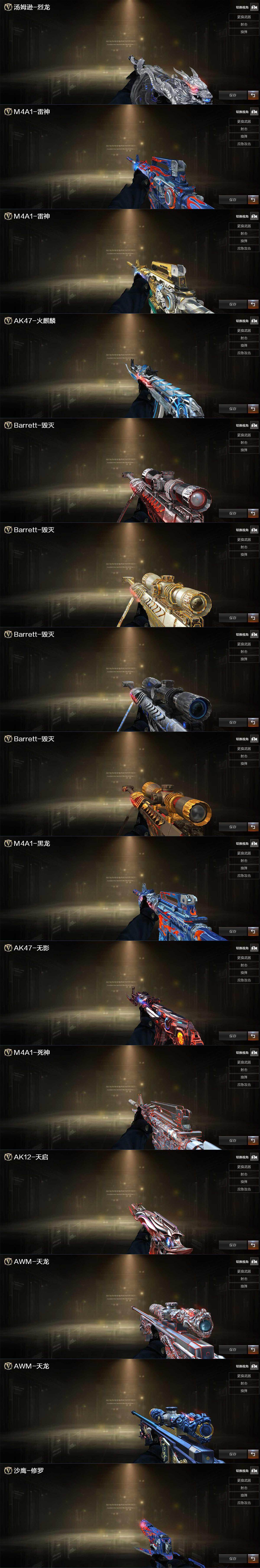 【音效卡】:AK47-火麒麟音效卡,M4A1-黑骑士音效卡,Barrett-毁灭音效卡