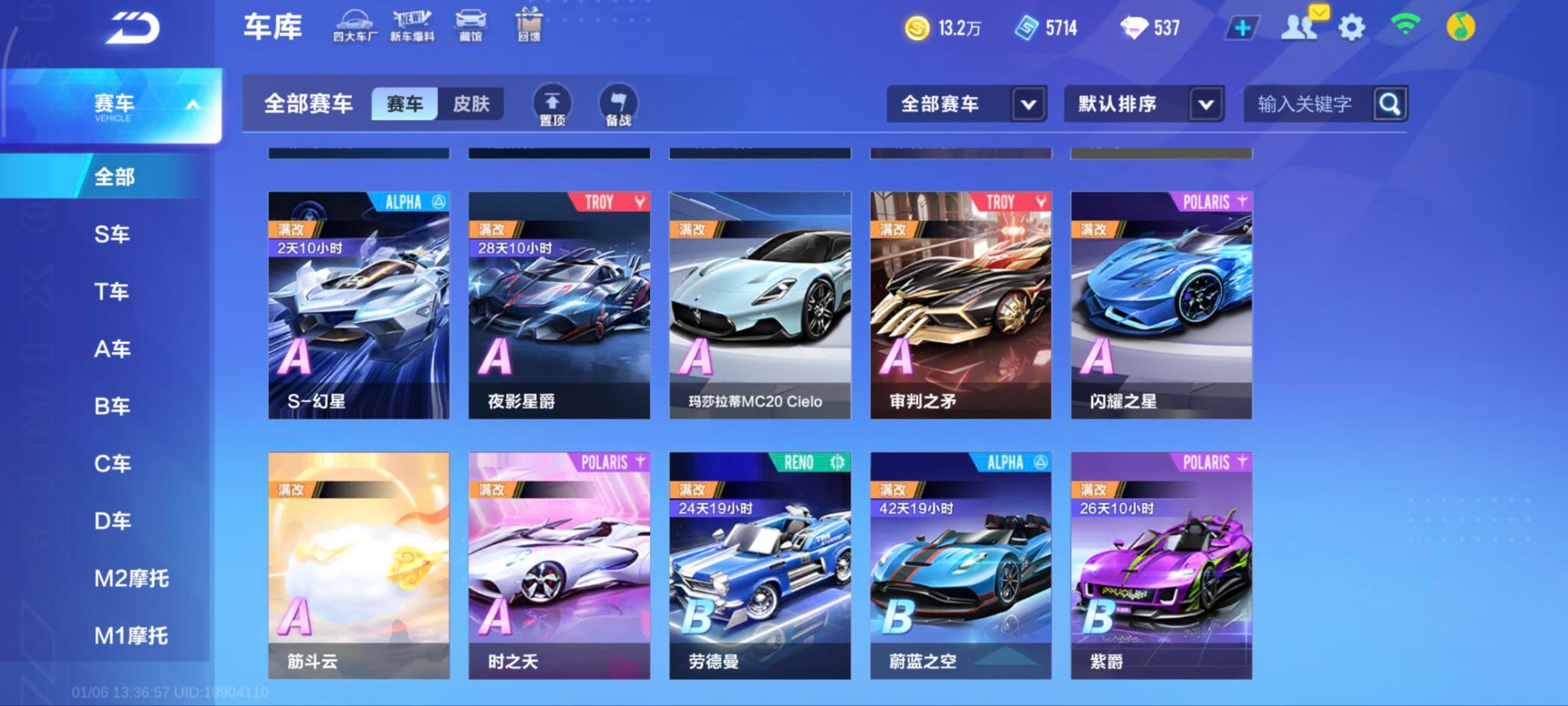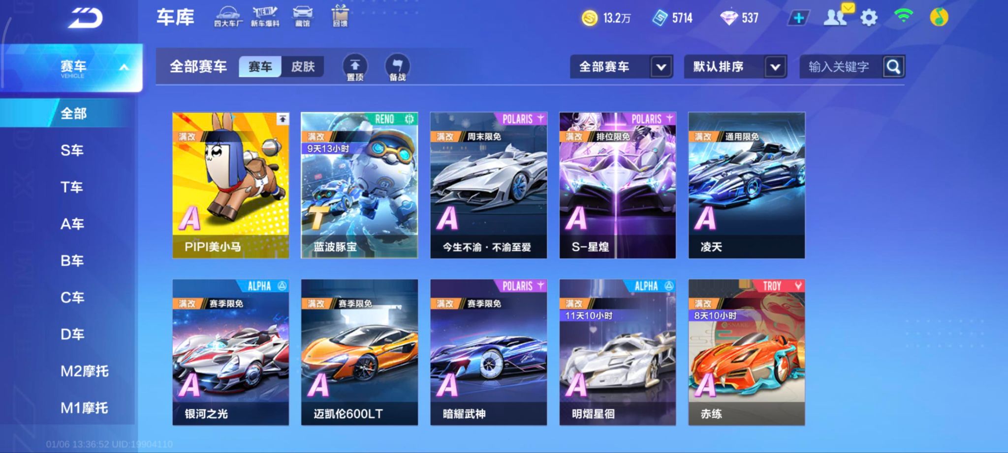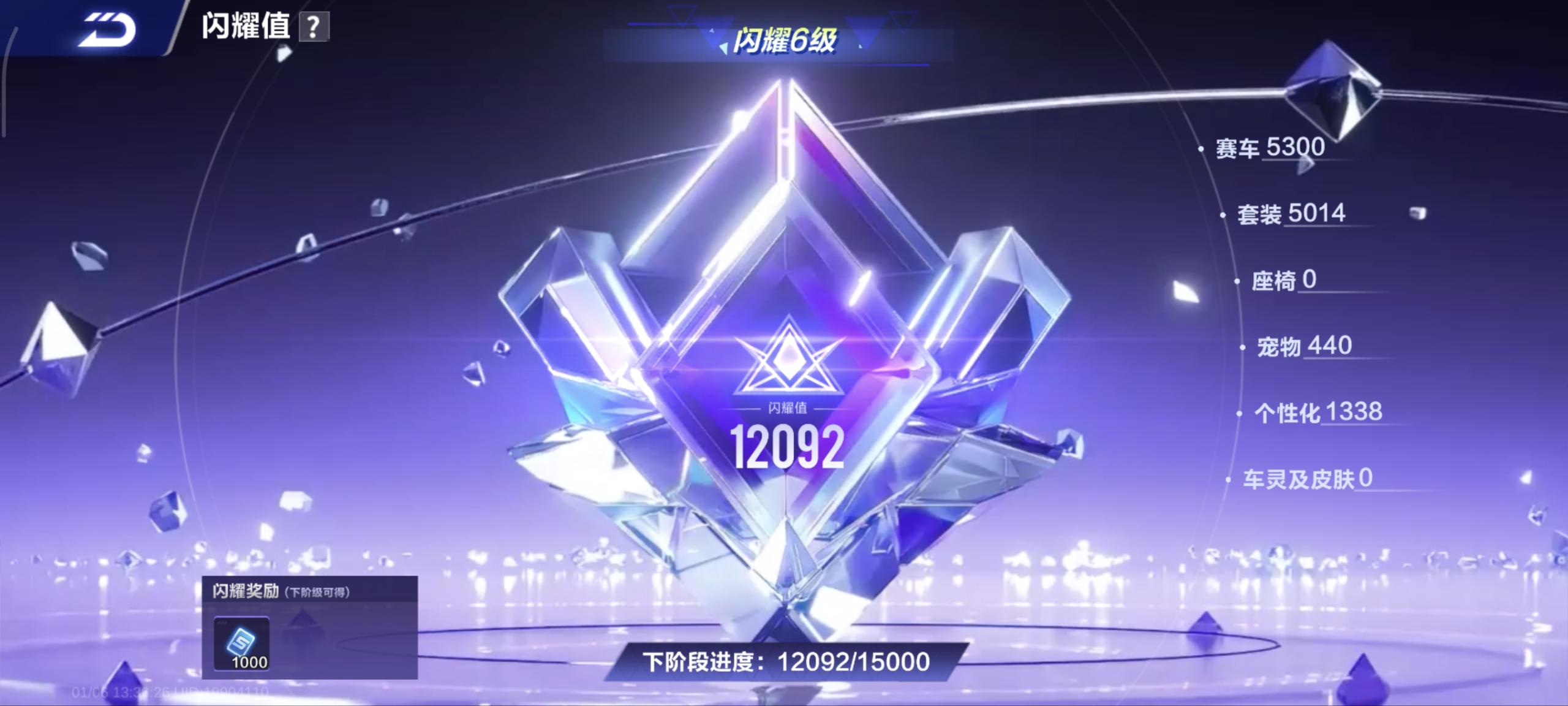单联赛溯光+叮当花鼠A车数量16游戏等级62贵族等级3车皮肤