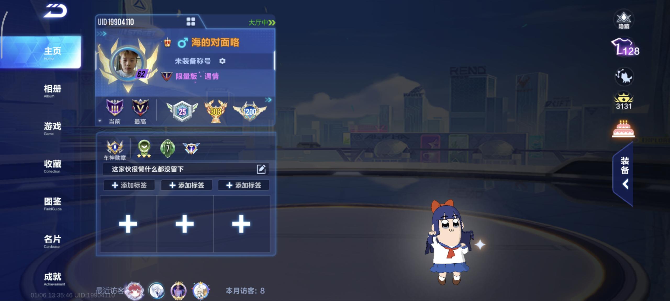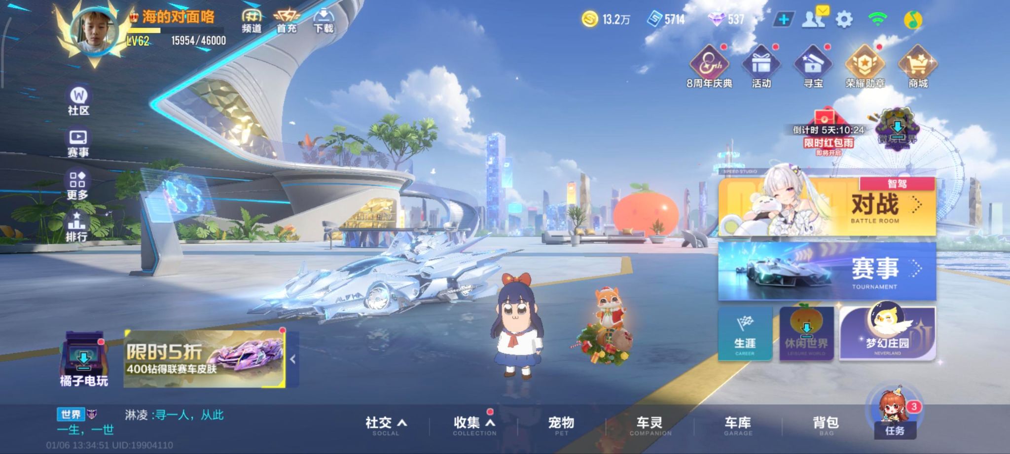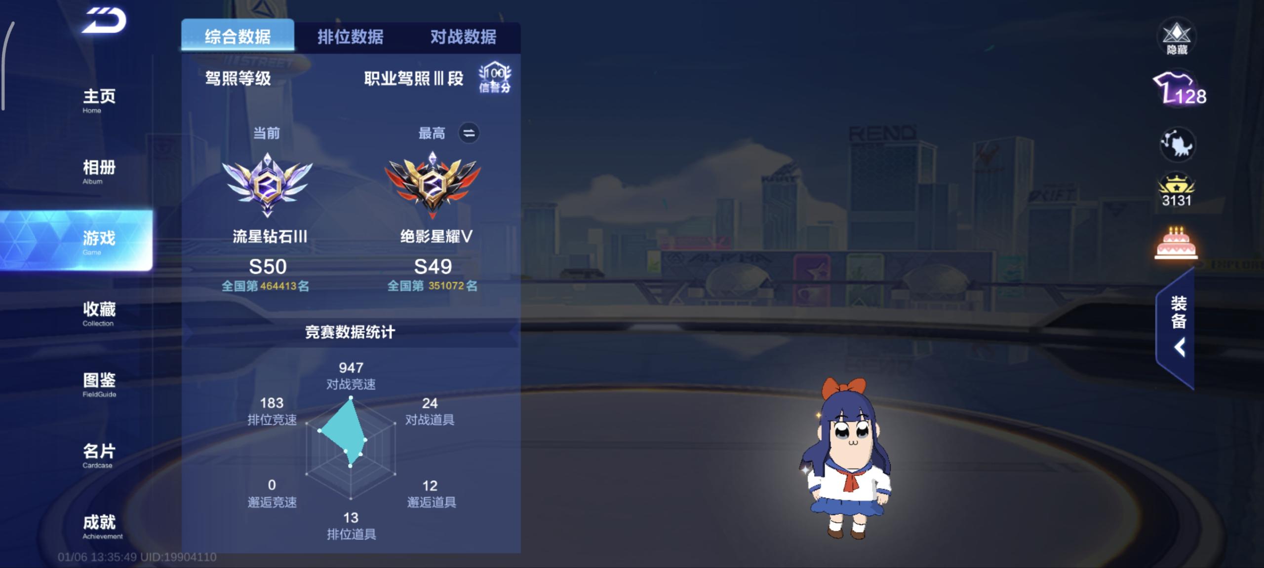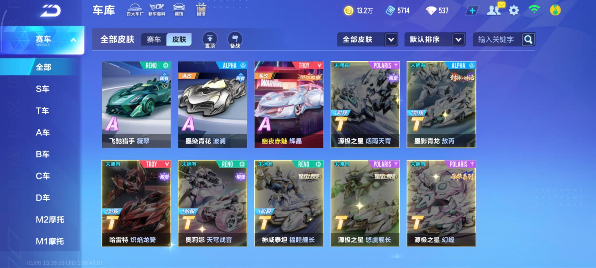 单联赛溯光+叮当花鼠A车数量16游戏等级62贵族等级3车皮肤