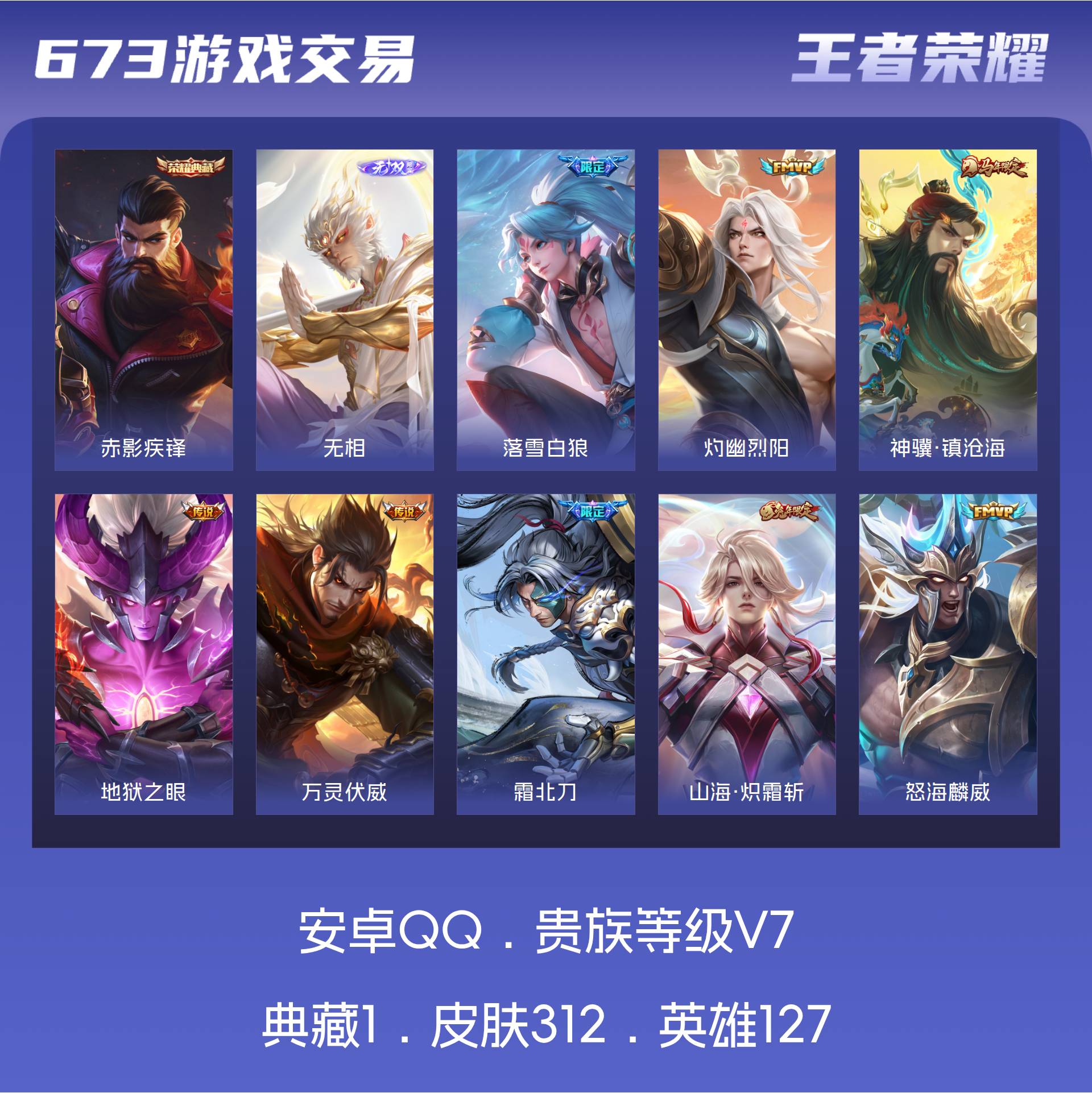 安卓QQ/最强王者/312皮肤/127英雄/1典藏/0珍品无双/1无双/0珍品传说/12传说/76史