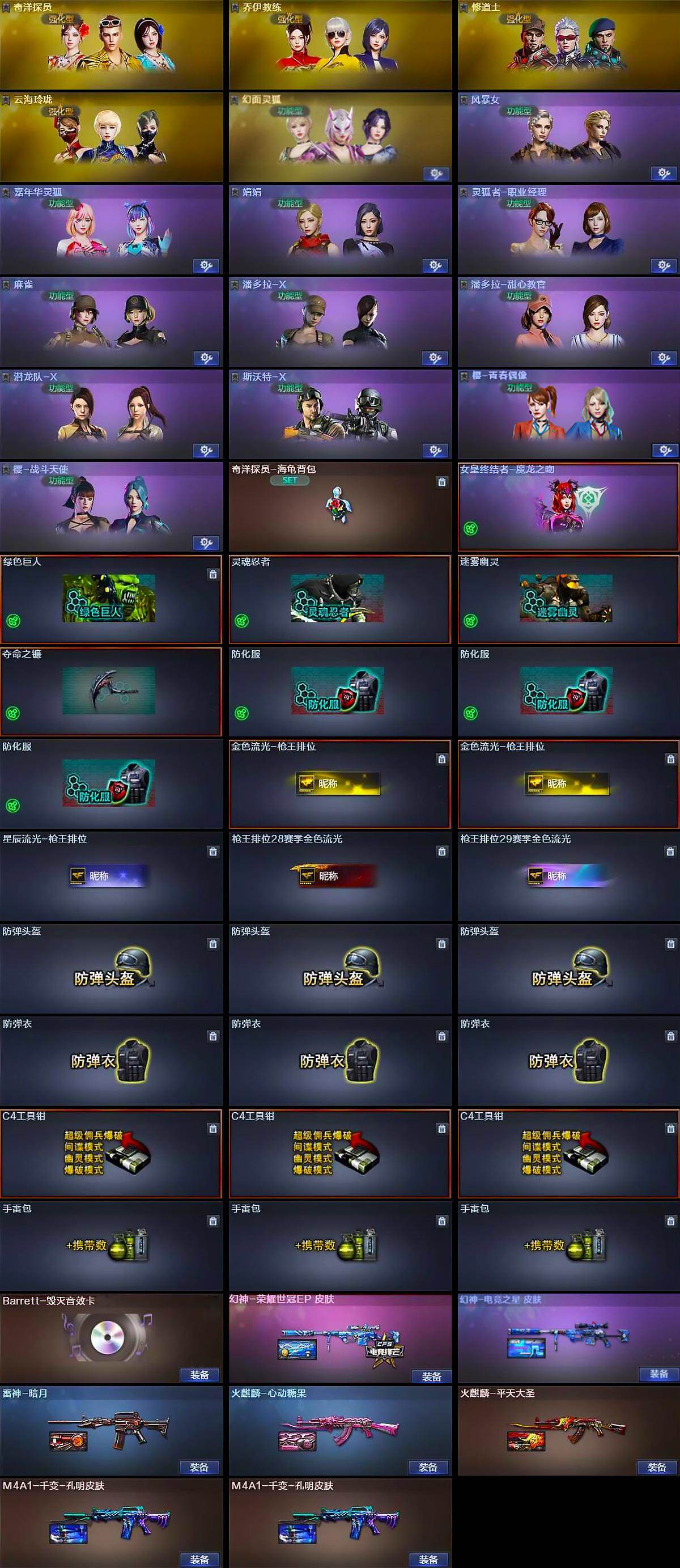 【皮肤】:幻神-荣耀世冠EP 皮肤,幻神-电竞之星 皮肤,雷神-暗月,火麒麟-平天大圣,火麒麟-心动糖果,M4A1-千变-孔明皮肤*2