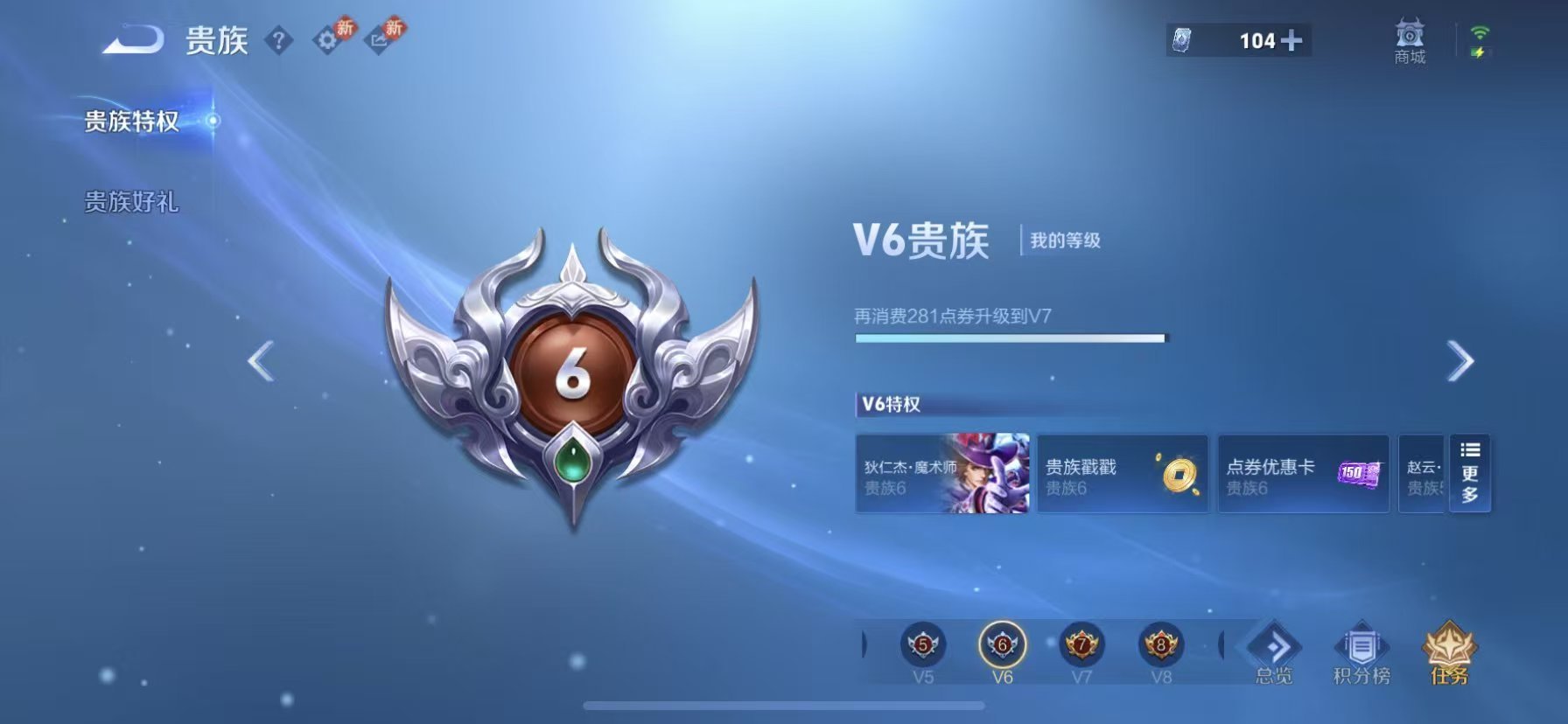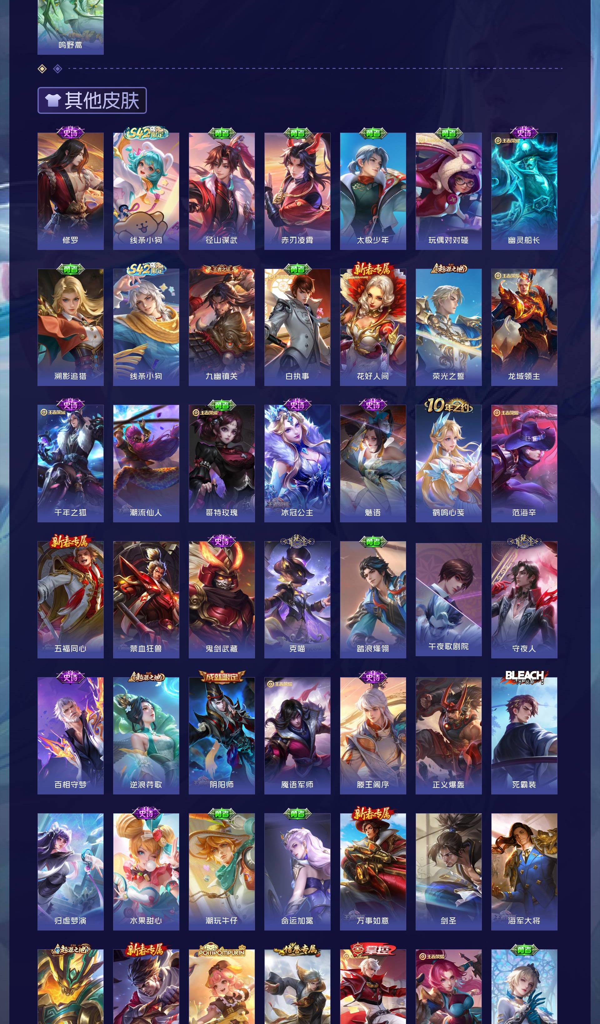 V6 皮肤93 英雄81 最强王者 荣耀典藏1 无双皮肤2 珍品传说1 传说8 其他皮肤85