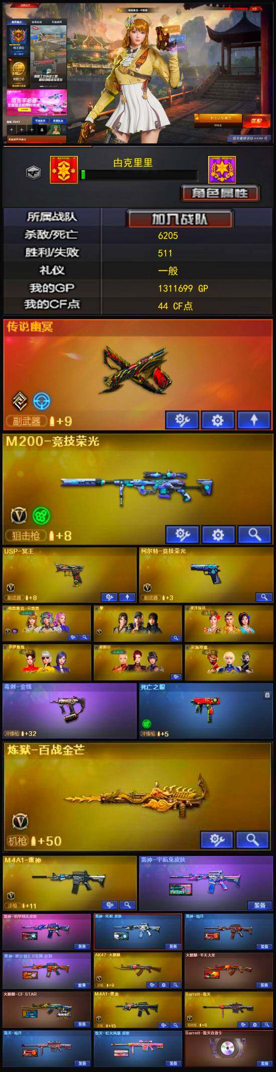 【热门武器】:传说幽冥,修罗-古蛇迷踪,M200-竞技荣光,死亡之眼,荣耀世冠-雷神,Cat-刀锋,沙鹰-修罗*2,荣耀世冠-龙啸