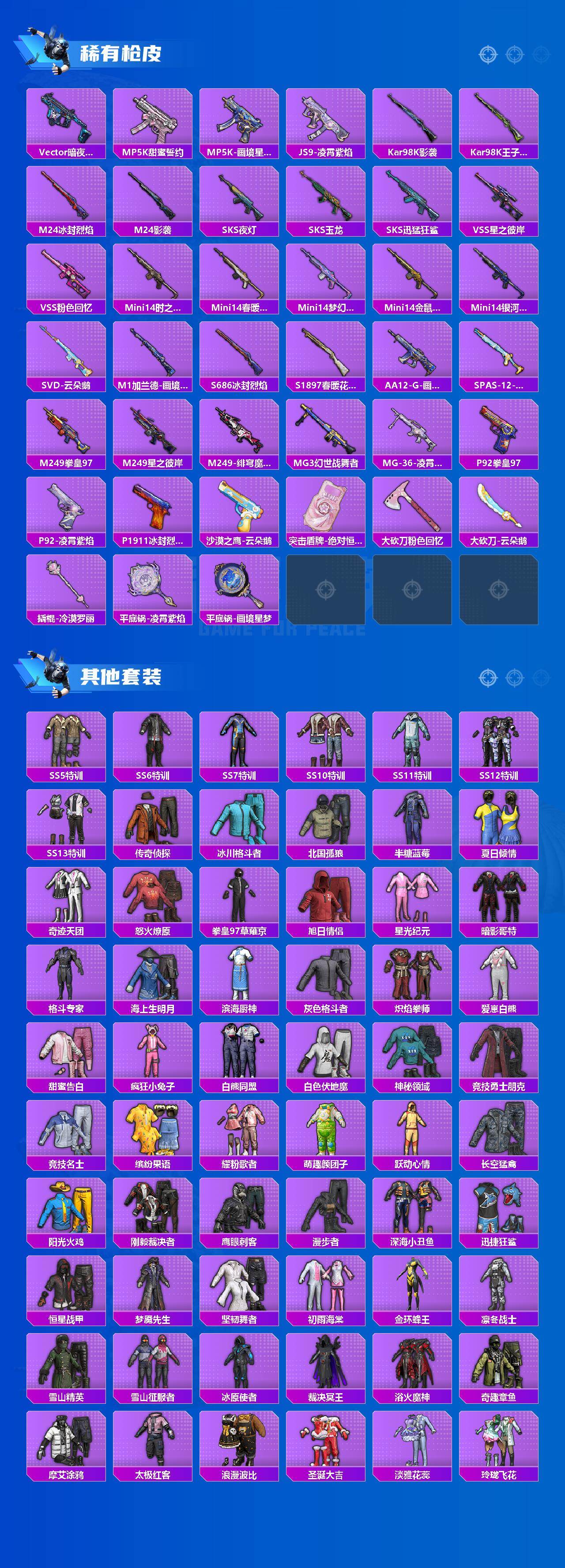 【粉色枪皮等级】:M416-五爪金龙(七级),M249-绝对恒星(七级),DP-28