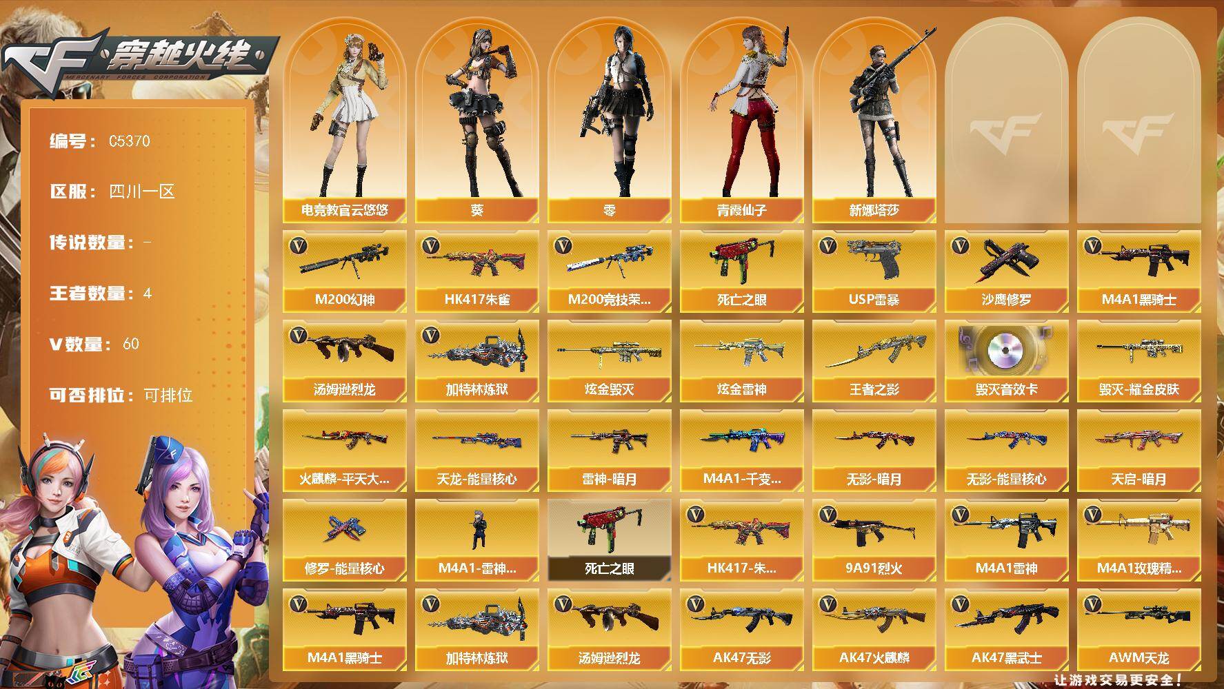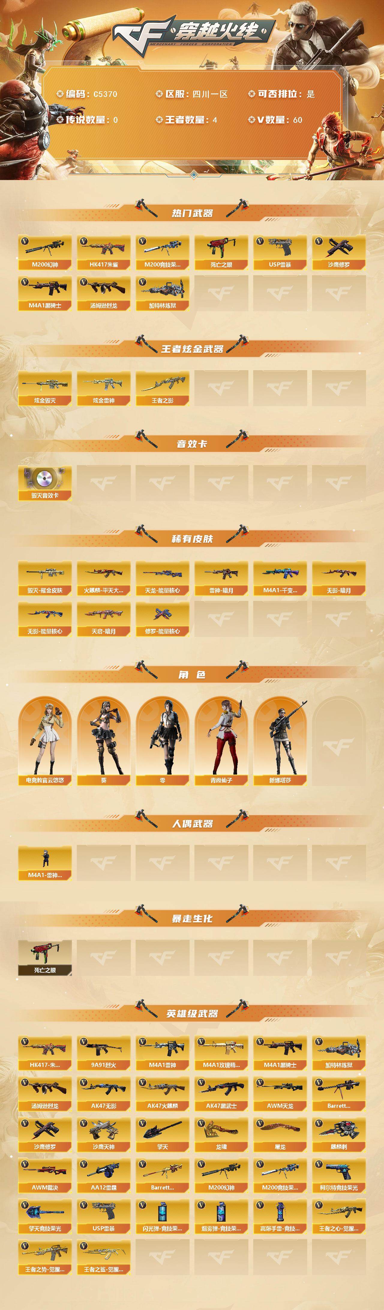 【C5370】四川一区-63V-4王者武器数-2炫金武器数