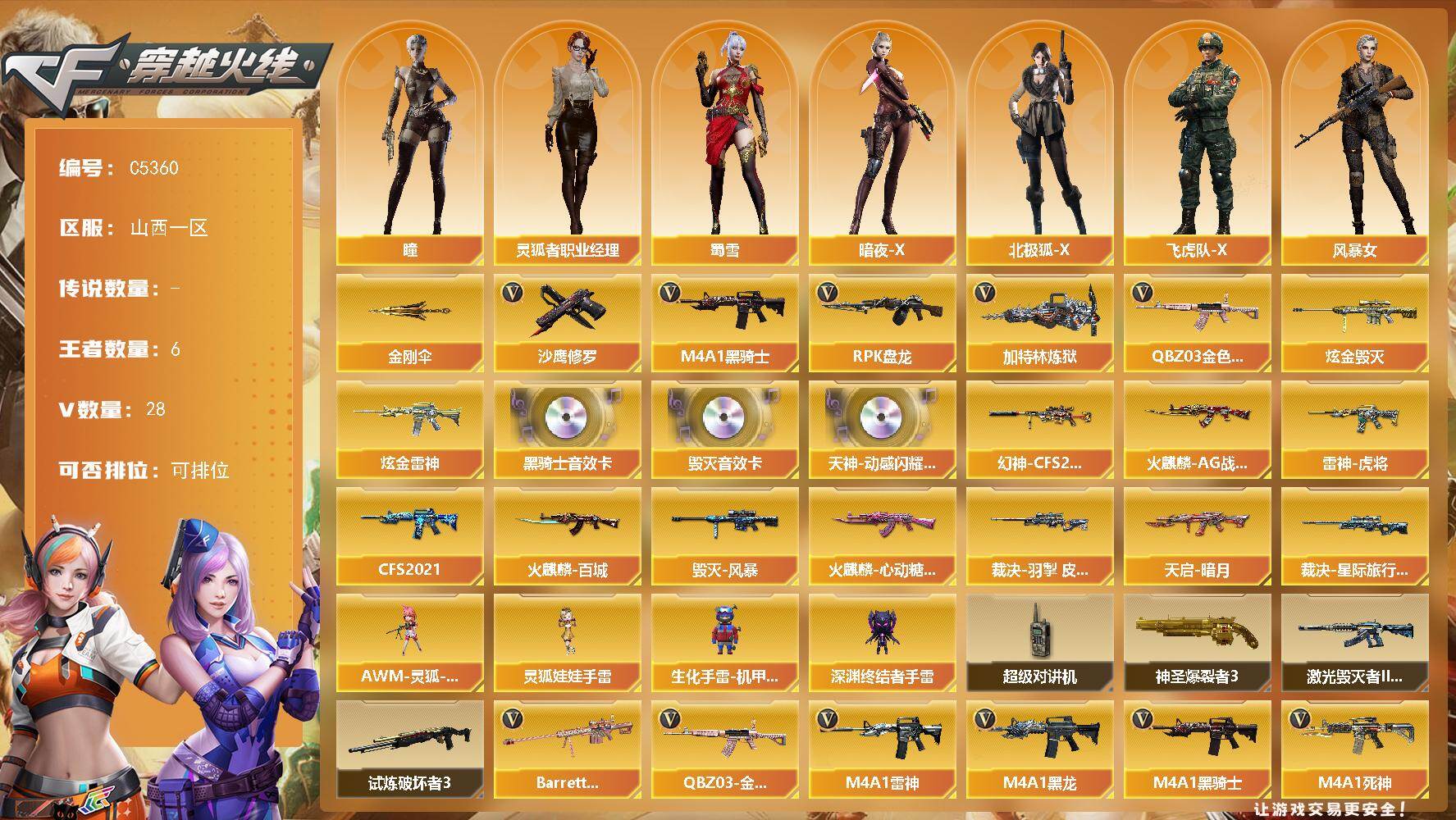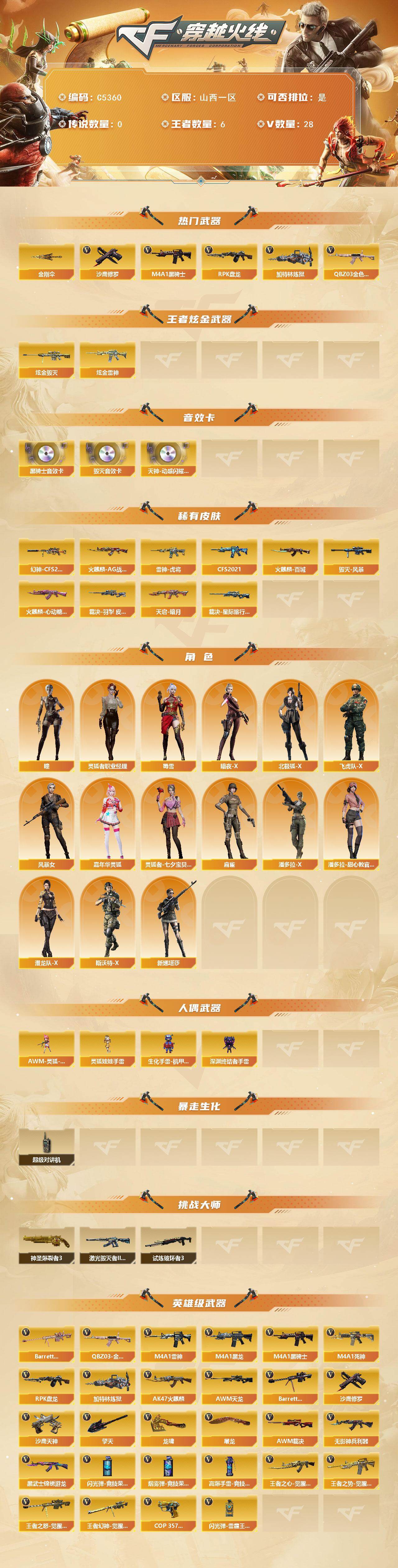 【C5360】山西一区-37V-6王者武器数-2炫金武器数