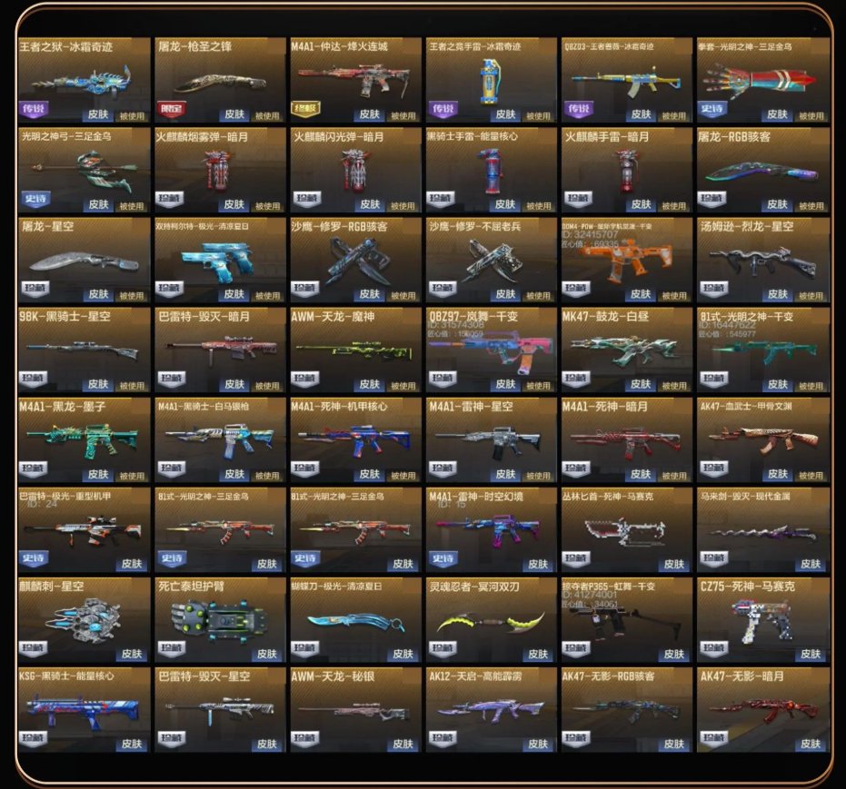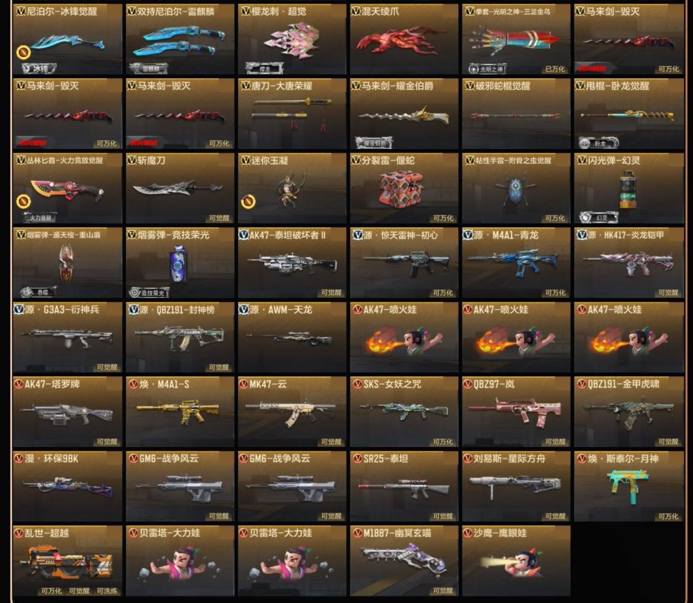 【苹果QQ】 角色等级:大元首 【角色】关小雨、零-水下丽影、樱、步练师、月神-X、夏日灵狐-X 【武器】王者之霆、王者之心、王者之狱、QBZ03-王者蔷薇、王者之魂、M4A1-仲达、CZS2-仲康、双管猎枪-文远、双持GLOCK18-本初、思召剑、M200-幻神、AWM-天龙、巴雷特-极光、98K-蜻蜓、98K-黑骑士、M4A1-雷神、CBJ-MS-毒蜂、HK417-朱雀、汤姆逊-烈龙、寒霜烈龙、AN94-超新星、蝴蝶刀-天神、尼泊尔-机械纪元、丛林匕首-火力竞放觉醒、迷你玉凝、RPK-盘龙、