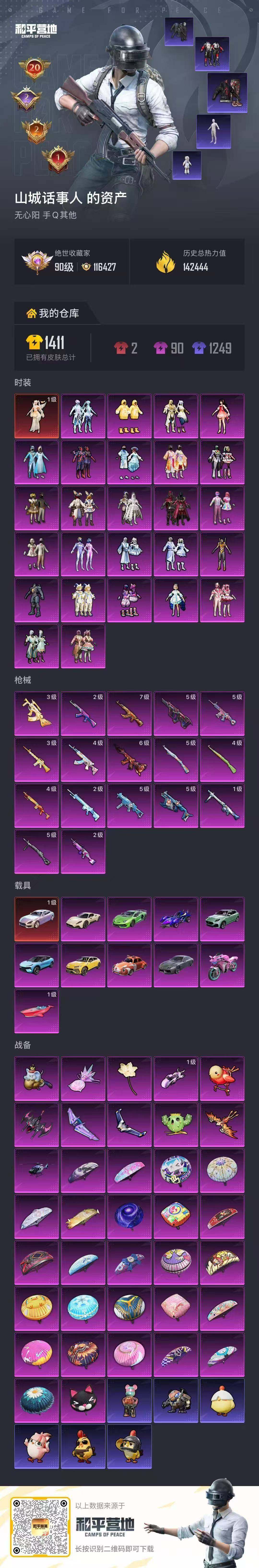 安卓 手Q-1神装-26粉装-17特效枪-11载具-10粉色飞行器-142444热力值-20王牌印记-293套装-365枪皮
