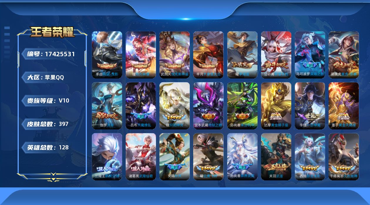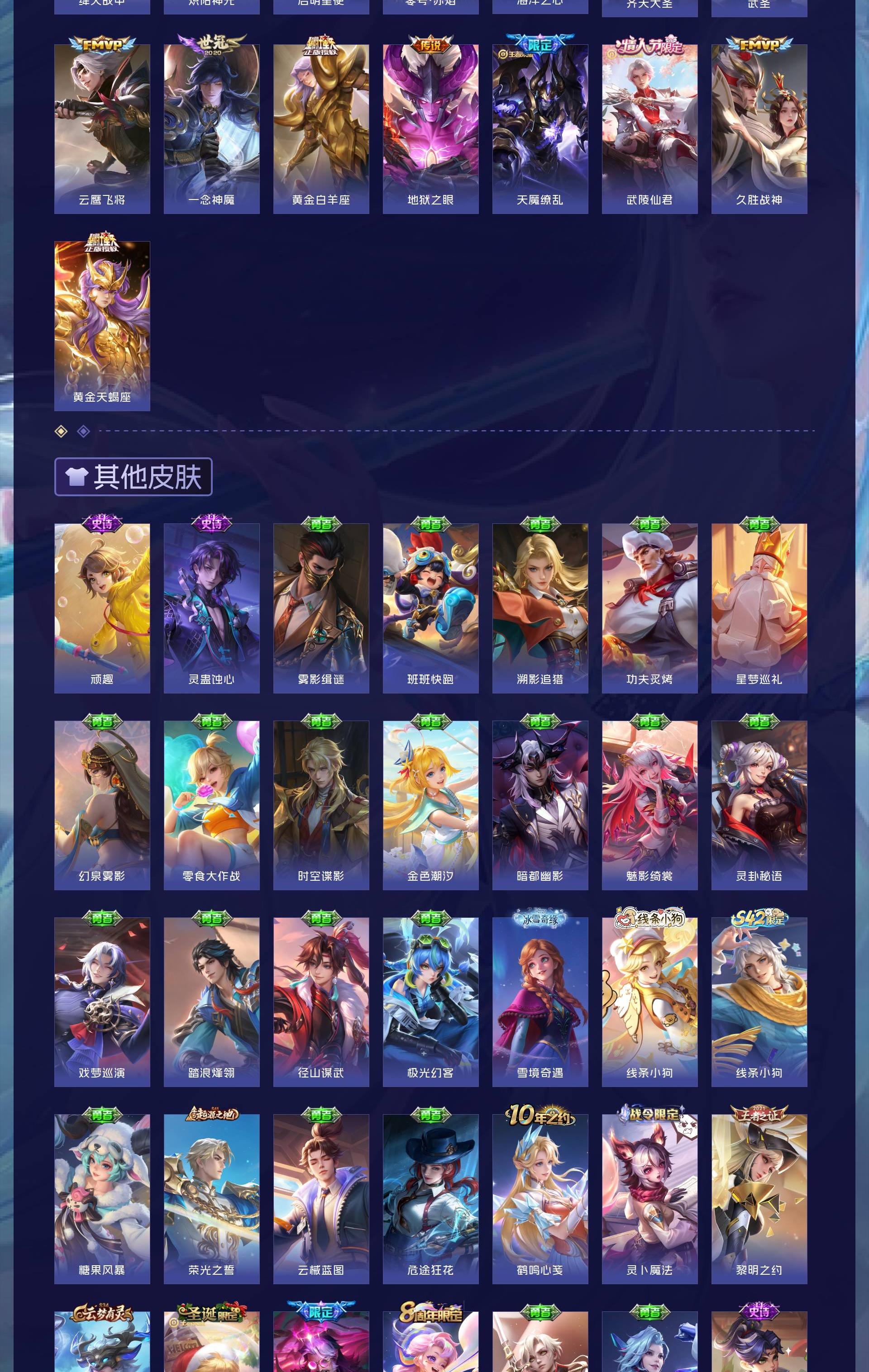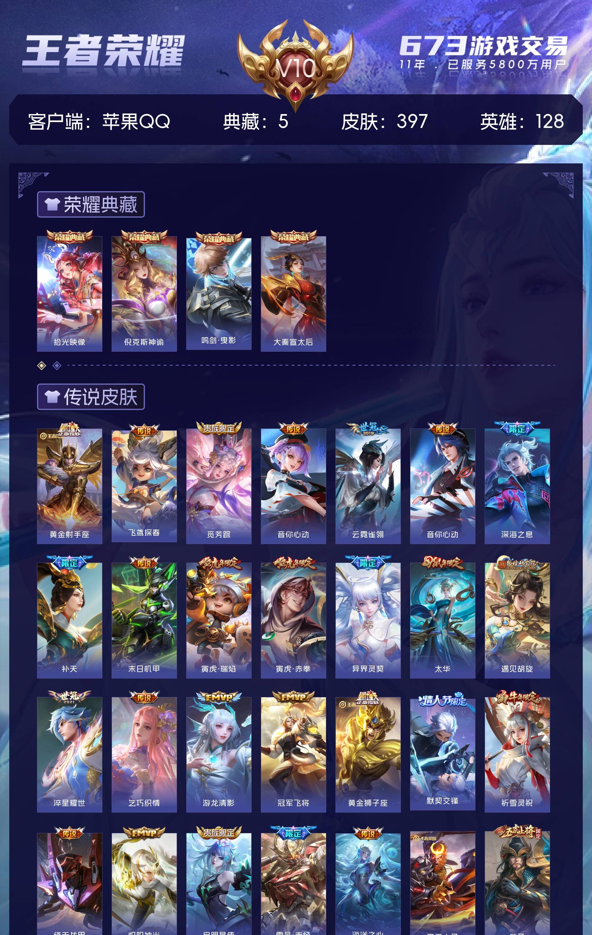 V10 皮肤397 英雄128 非凡王者 荣耀典藏5 传说37 其他皮肤363