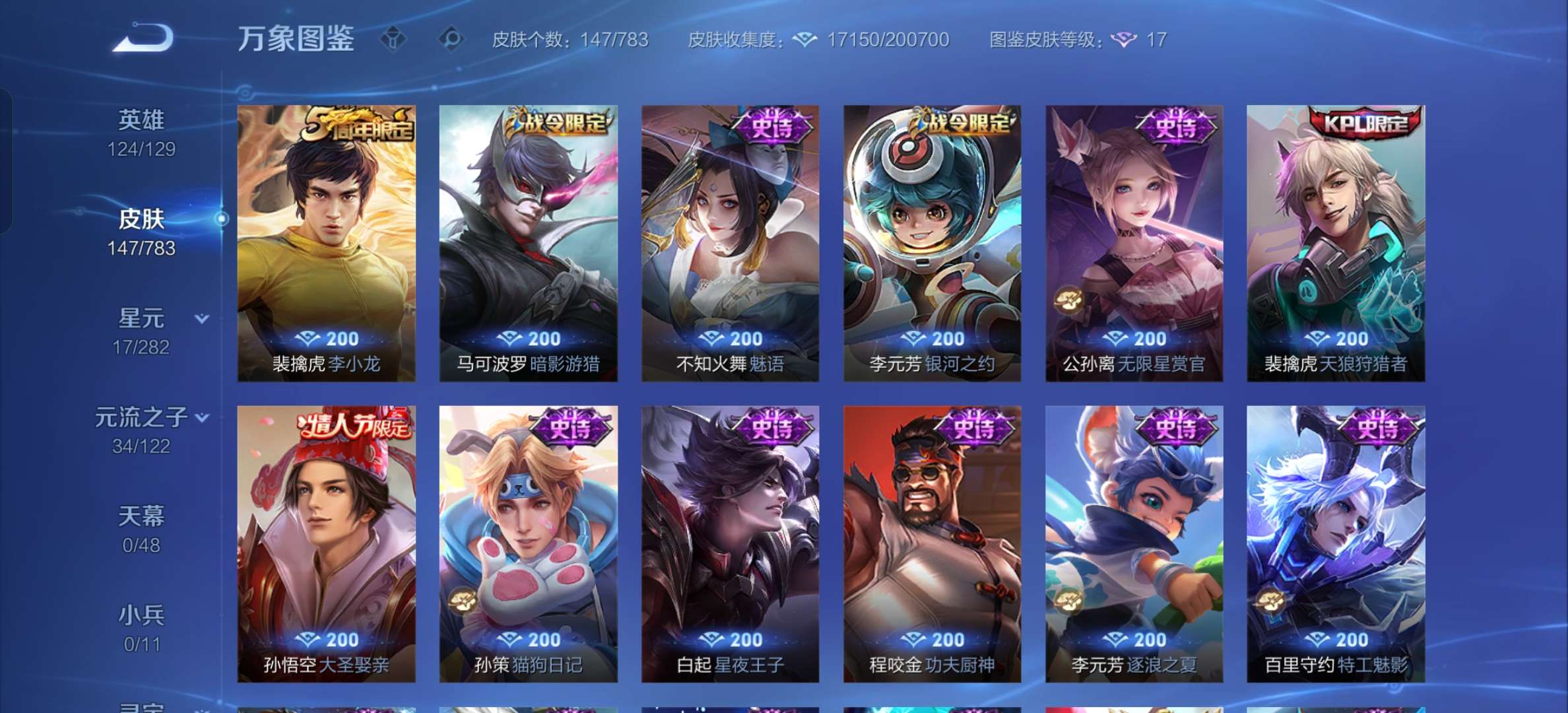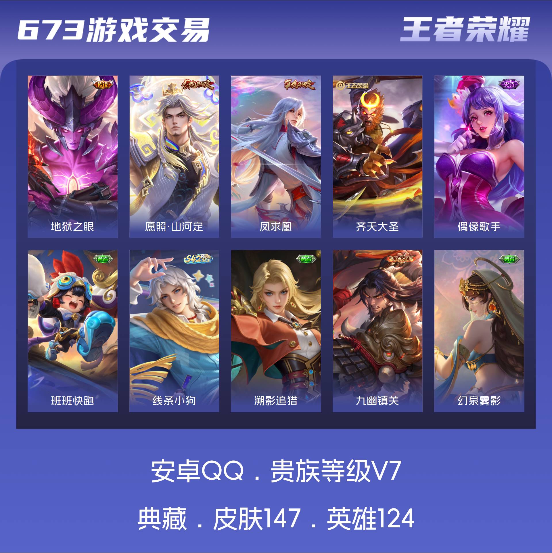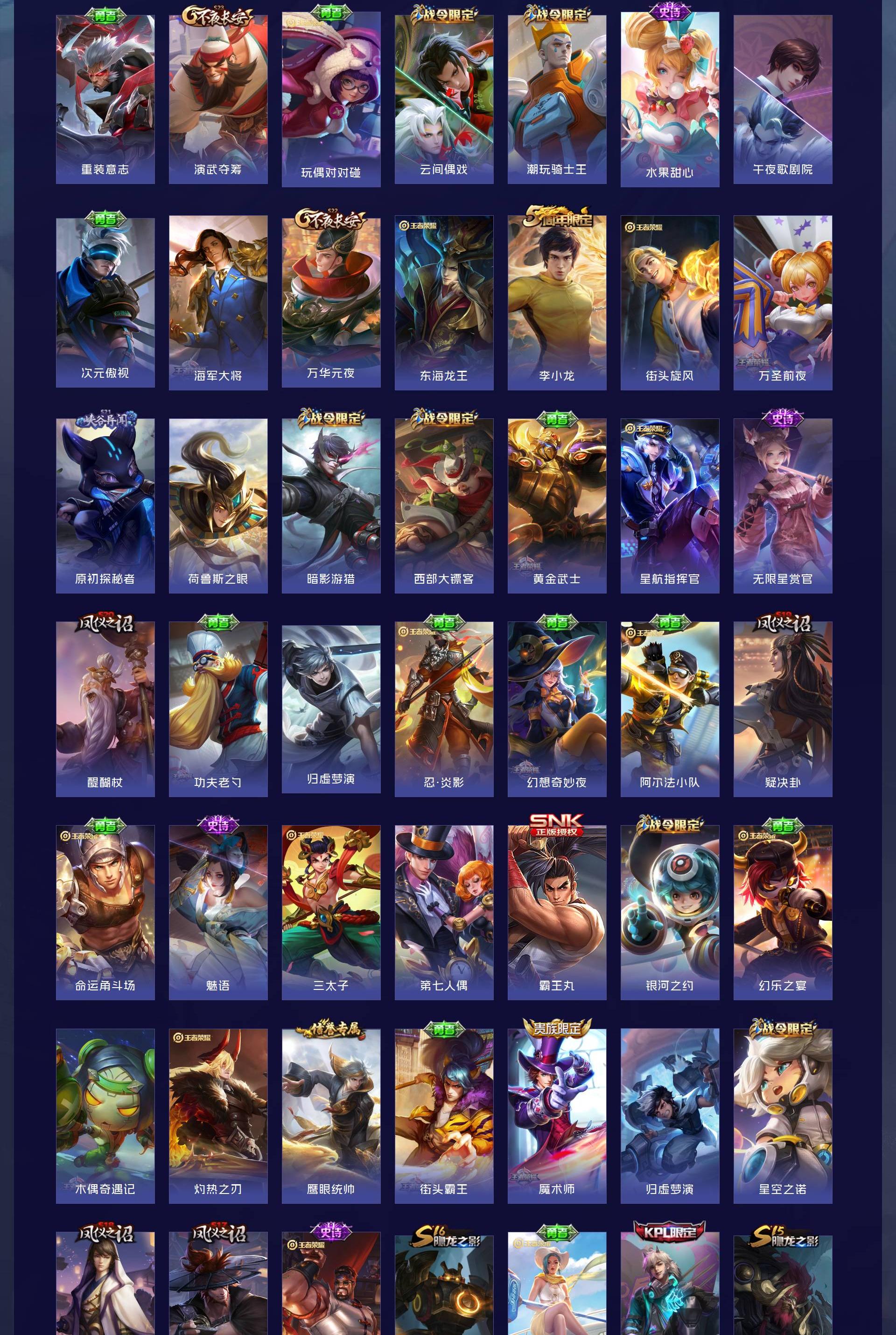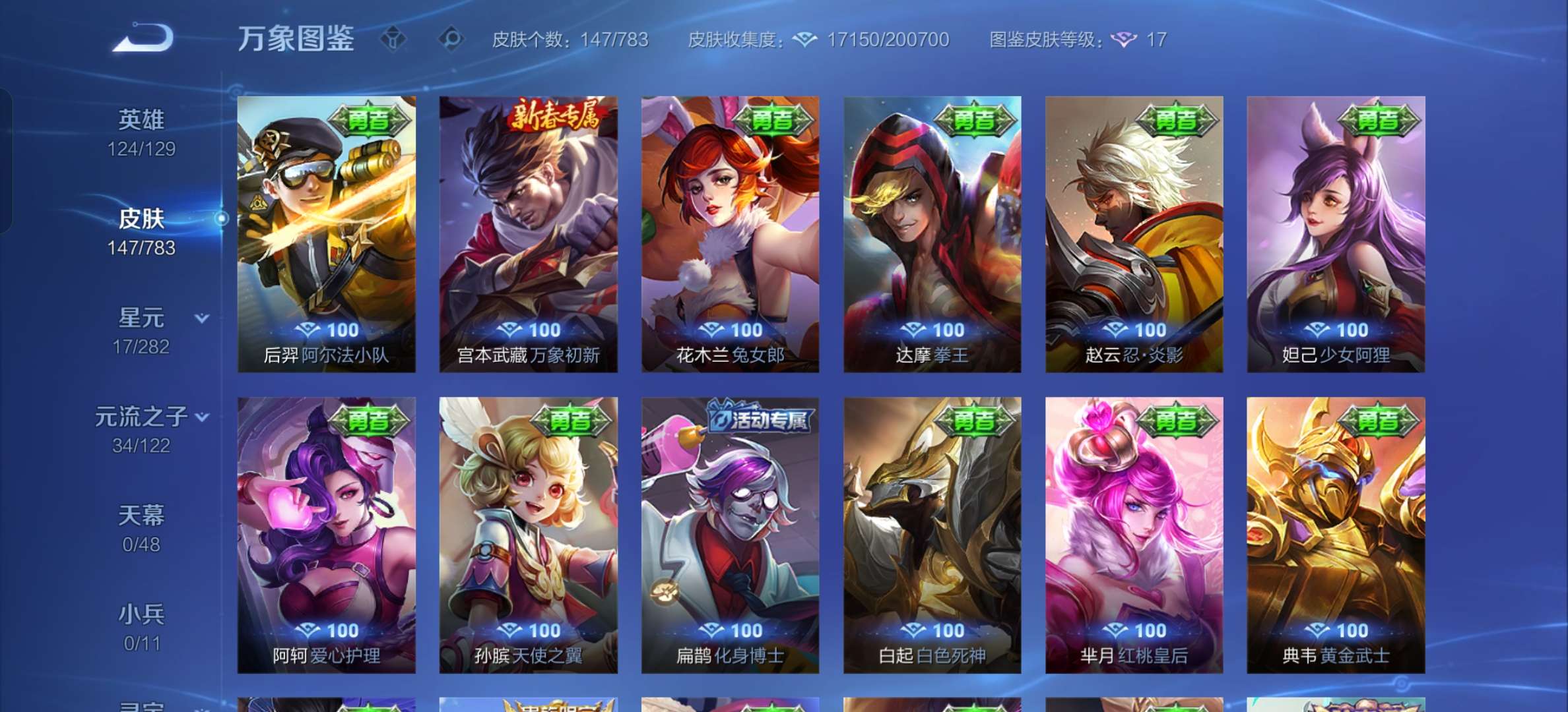 V7 皮肤147 英雄124 至尊星耀 星传说1 传说4 其他皮肤150
