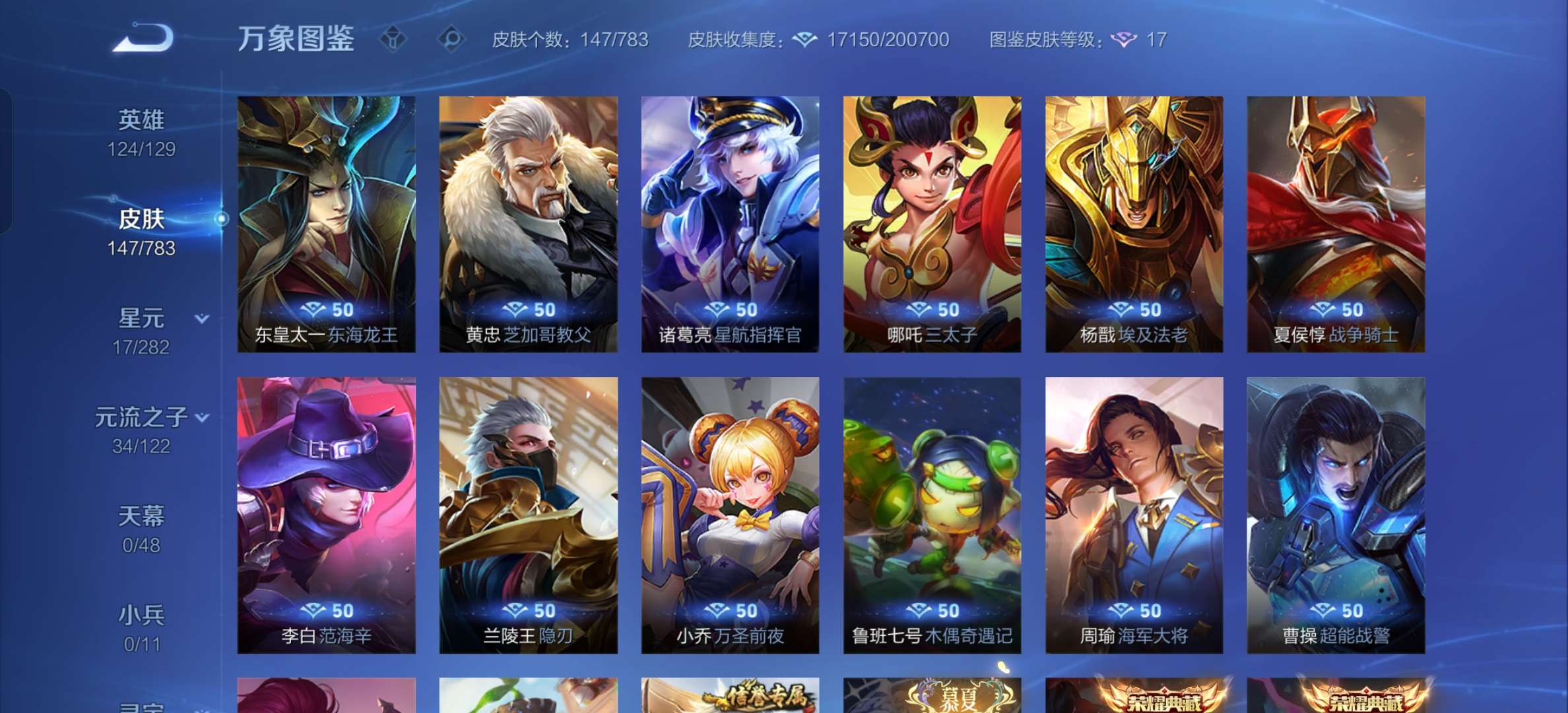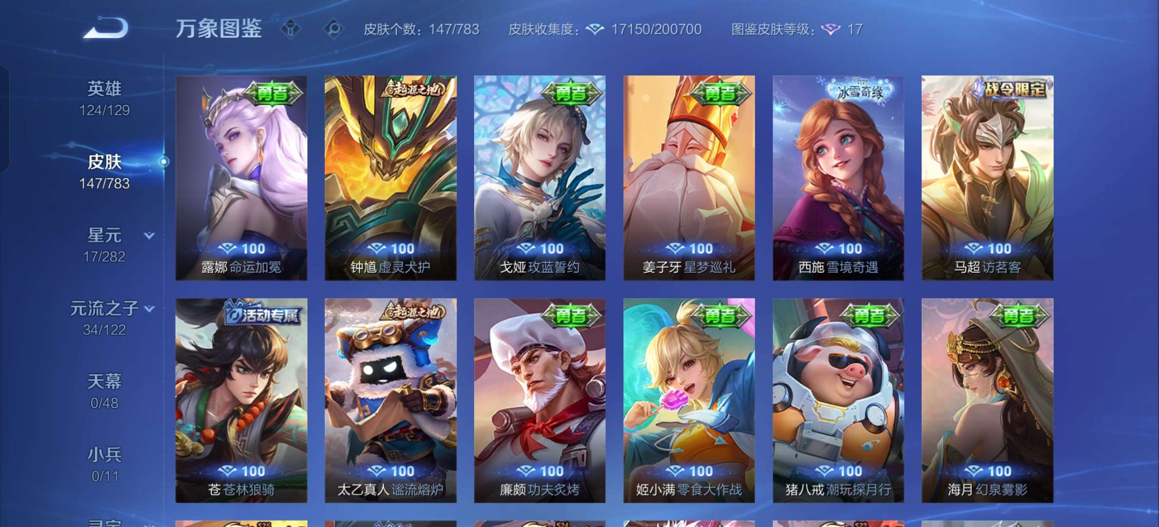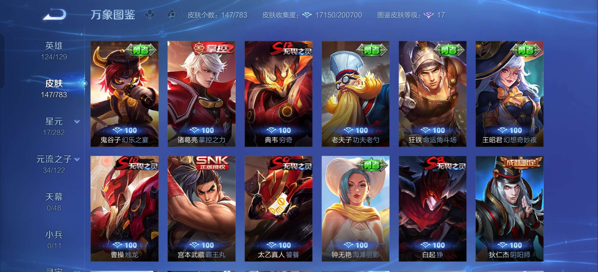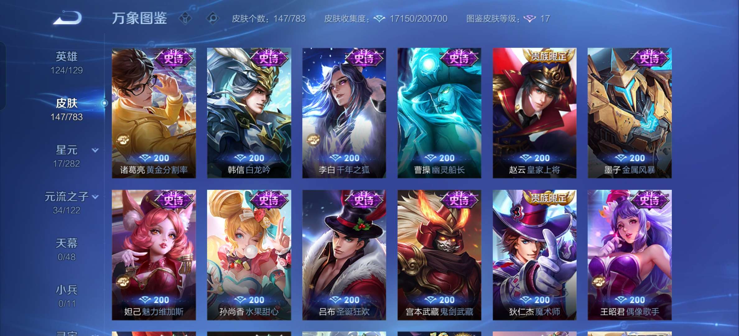 V7 皮肤147 英雄124 至尊星耀 星传说1 传说4 其他皮肤150