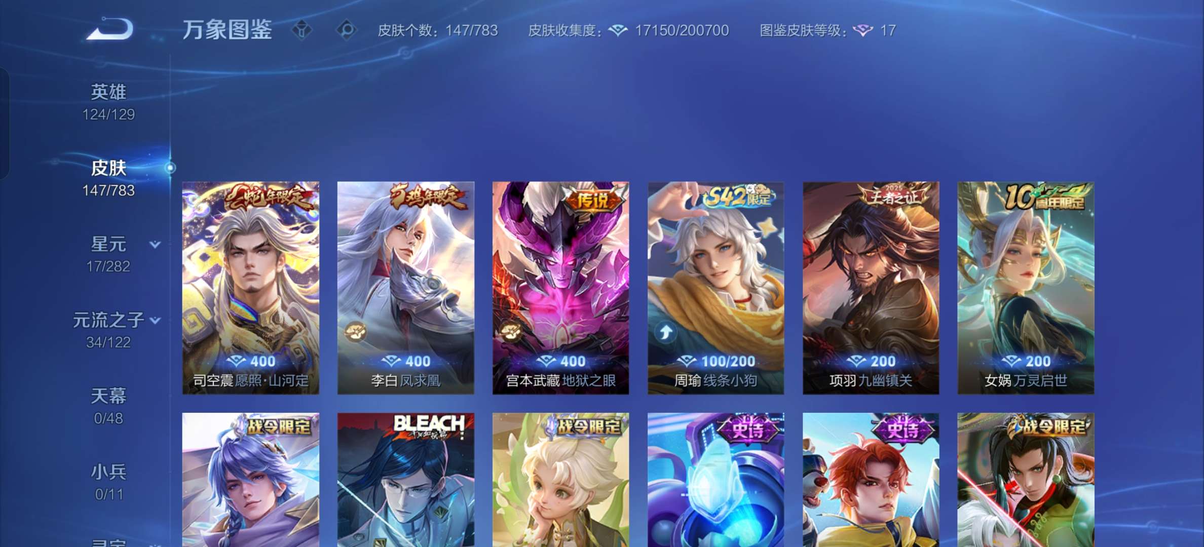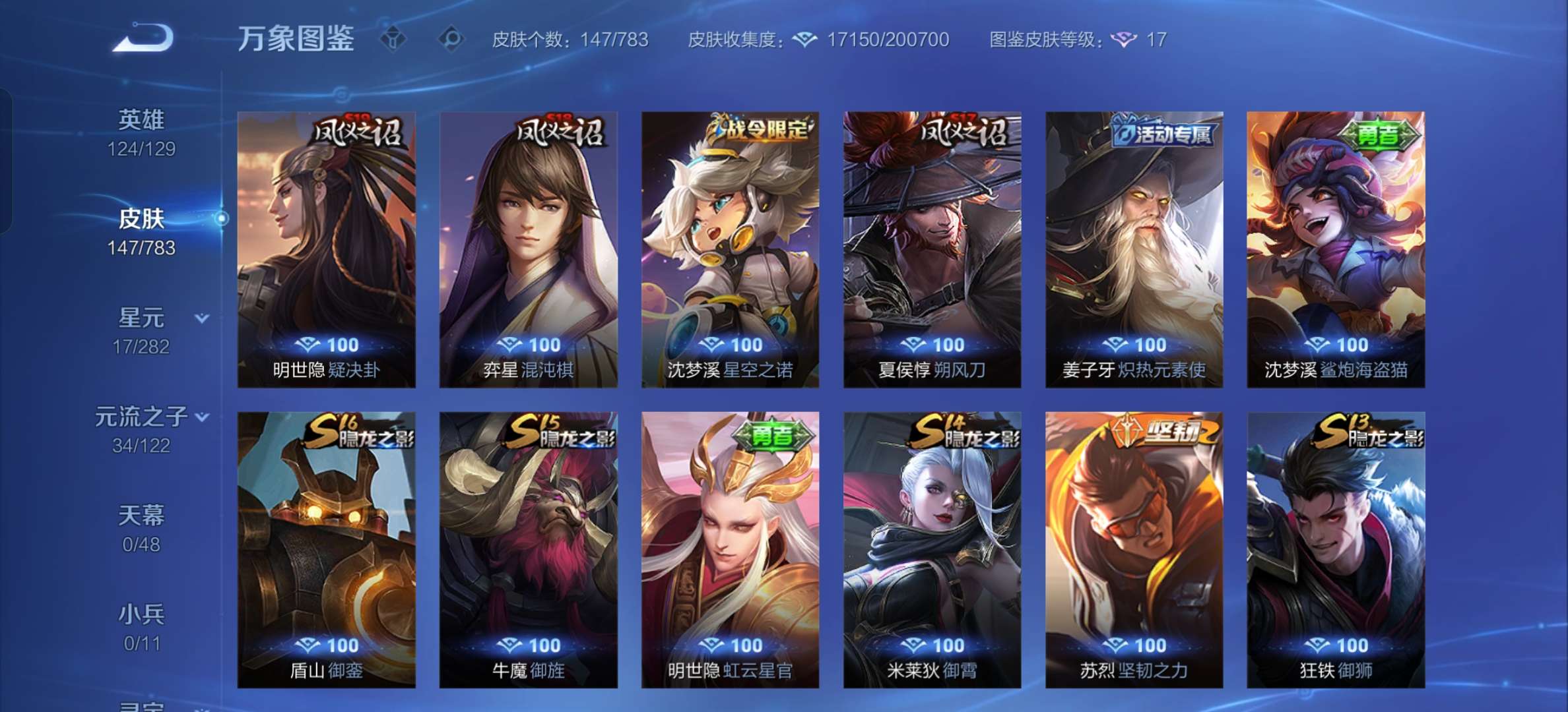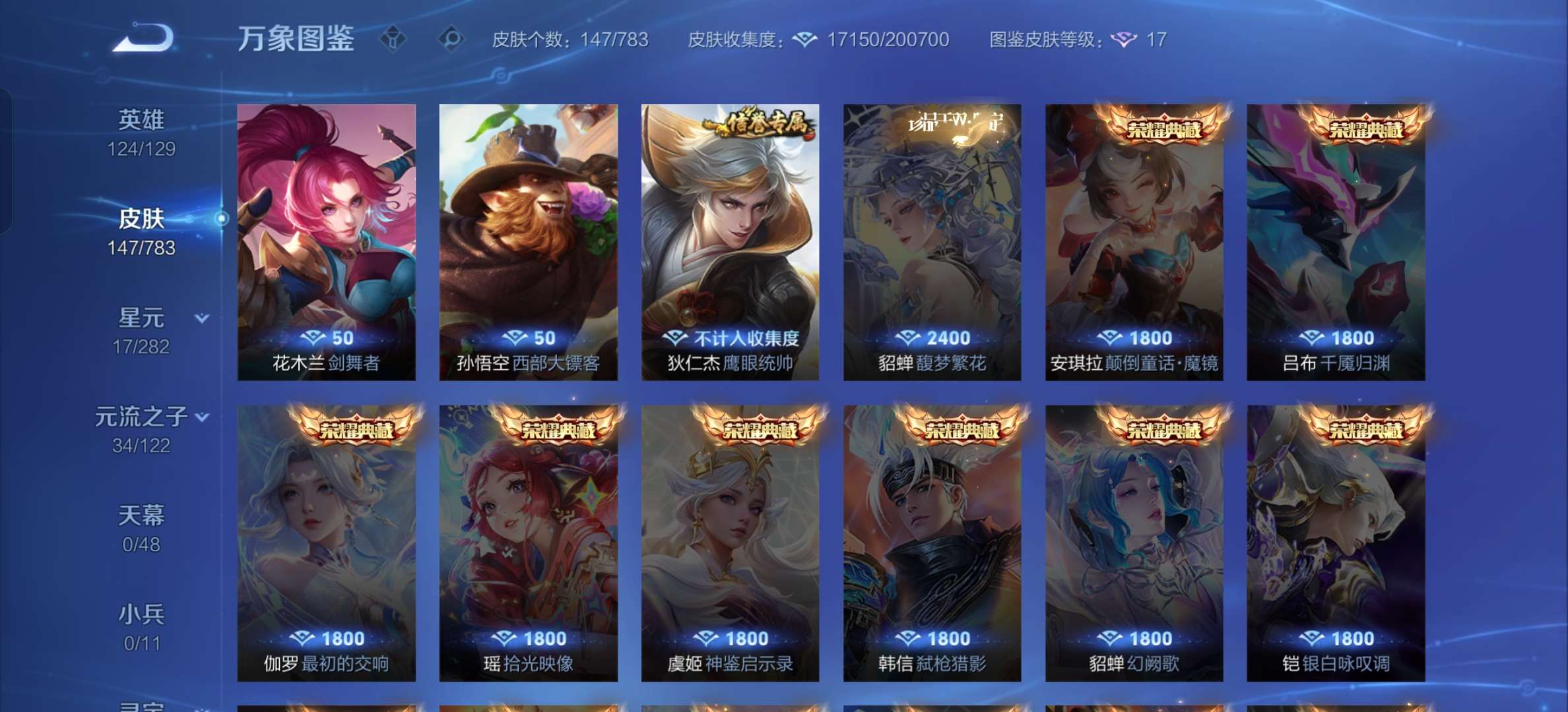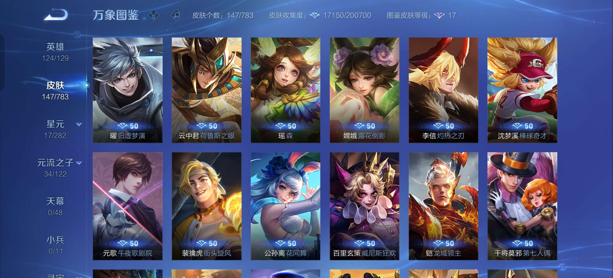 V7 皮肤147 英雄124 至尊星耀 星传说1 传说4 其他皮肤150
