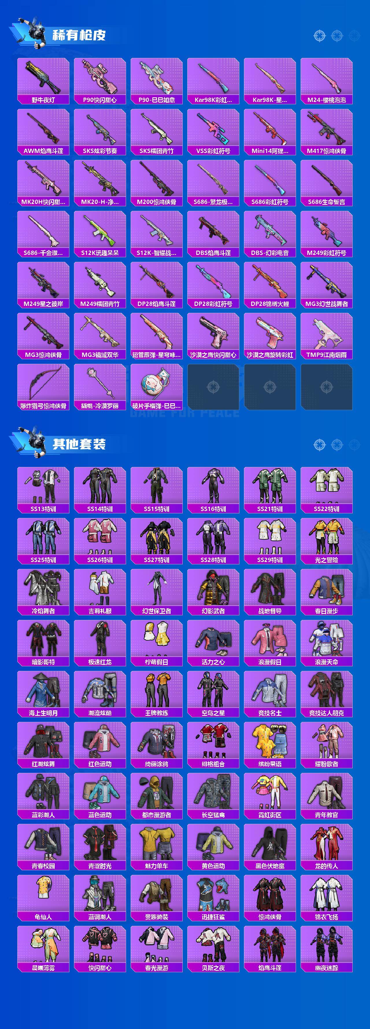 【粉色枪皮等级】:AKM-绿萝繁花(五级),SCAR-L-锦绣绵绵(五级),M416-电玩时刻(五级),AUG-暖羊咩咩(五级),UMP45-量子极限(五级),Vector-环太平洋(七级),AKS-74U-森灵