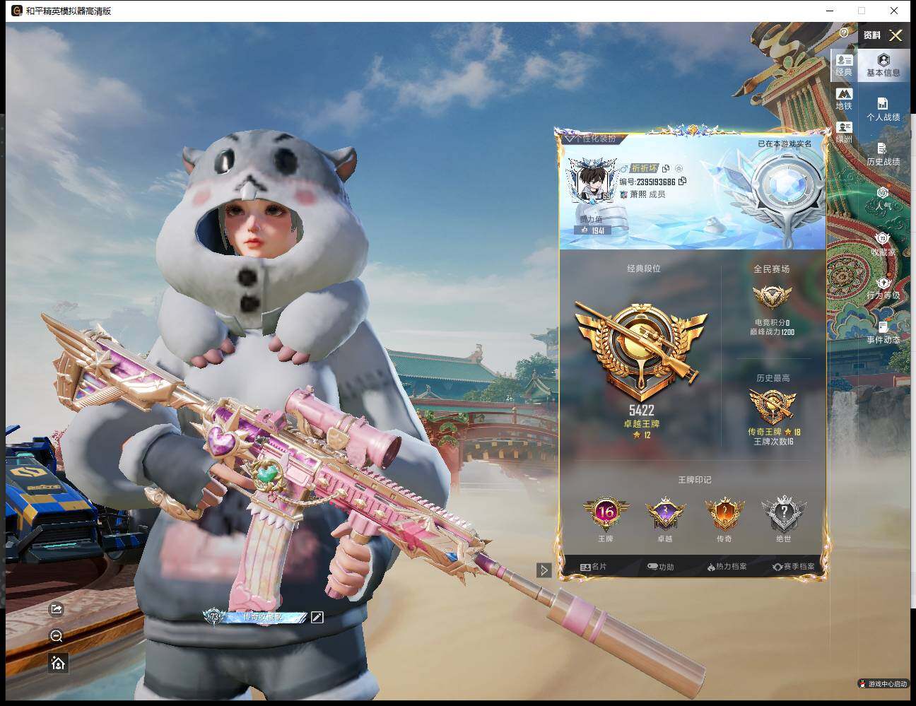5粉装-10特效枪-1载具-5粉色飞行器-87357热力值-16王牌印记-170套装-267枪皮