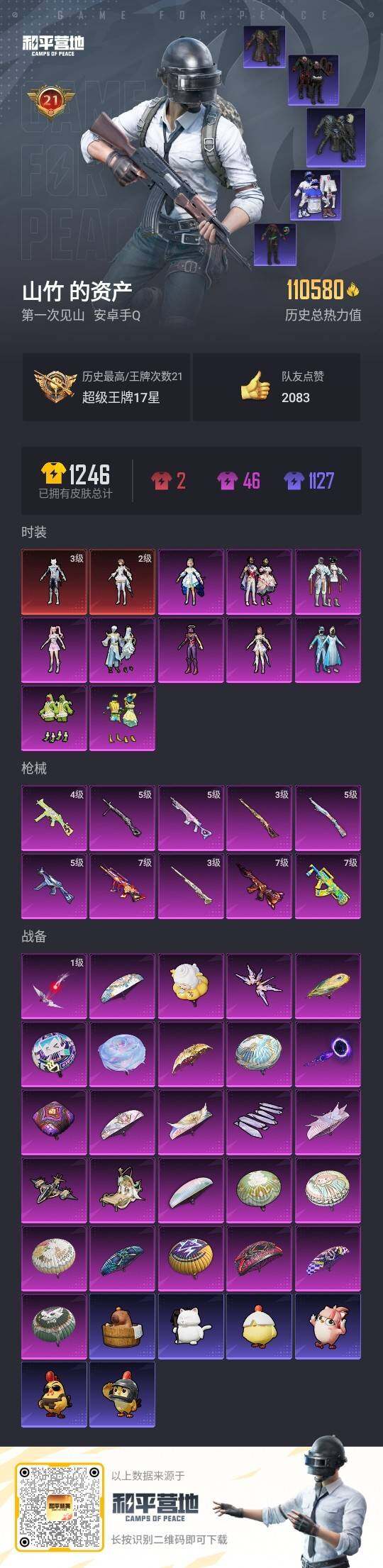 2神装-10粉装-10特效枪-0载具-6粉色飞行器-110580热力值-21王牌印记-260套装-318枪皮