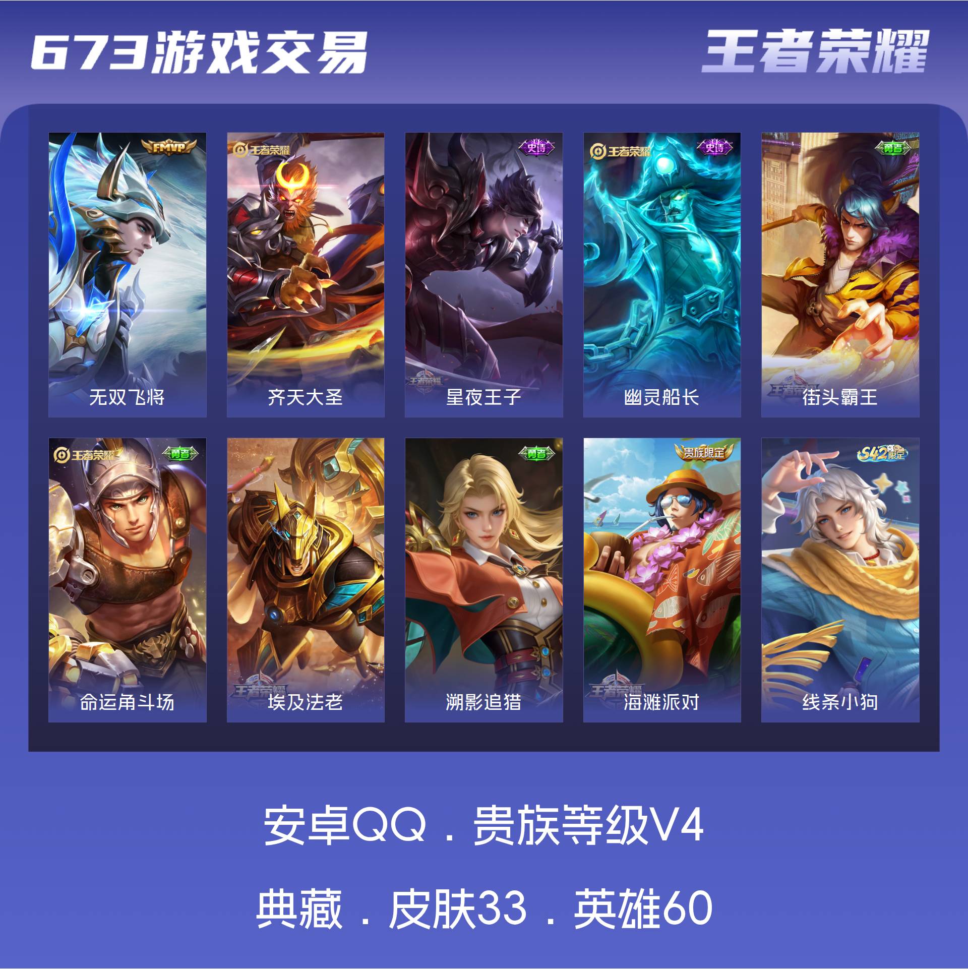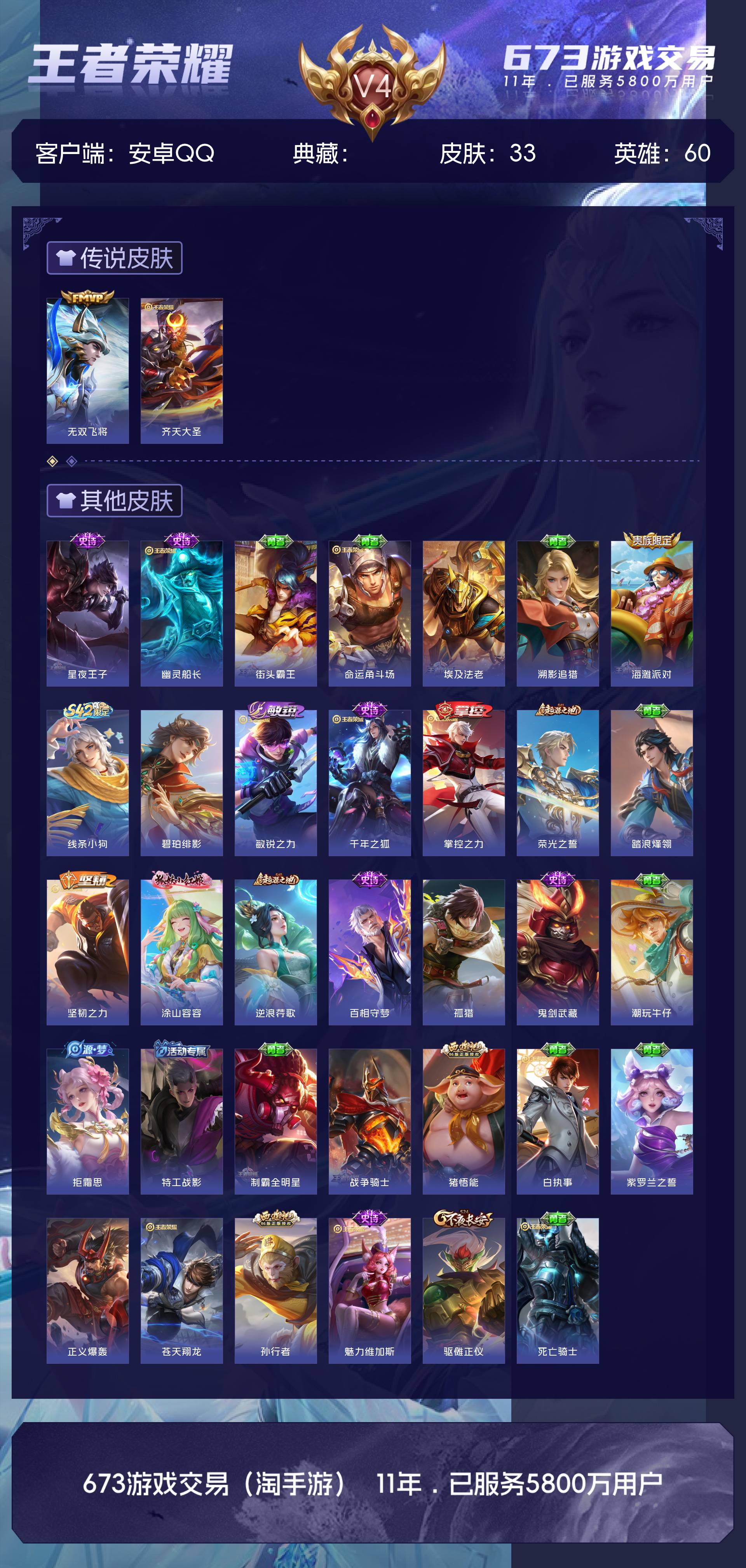 V4 皮肤33 英雄60 最强王者 传说2 其他皮肤34