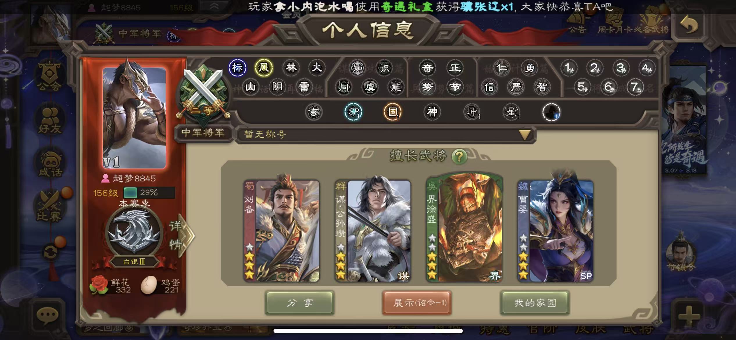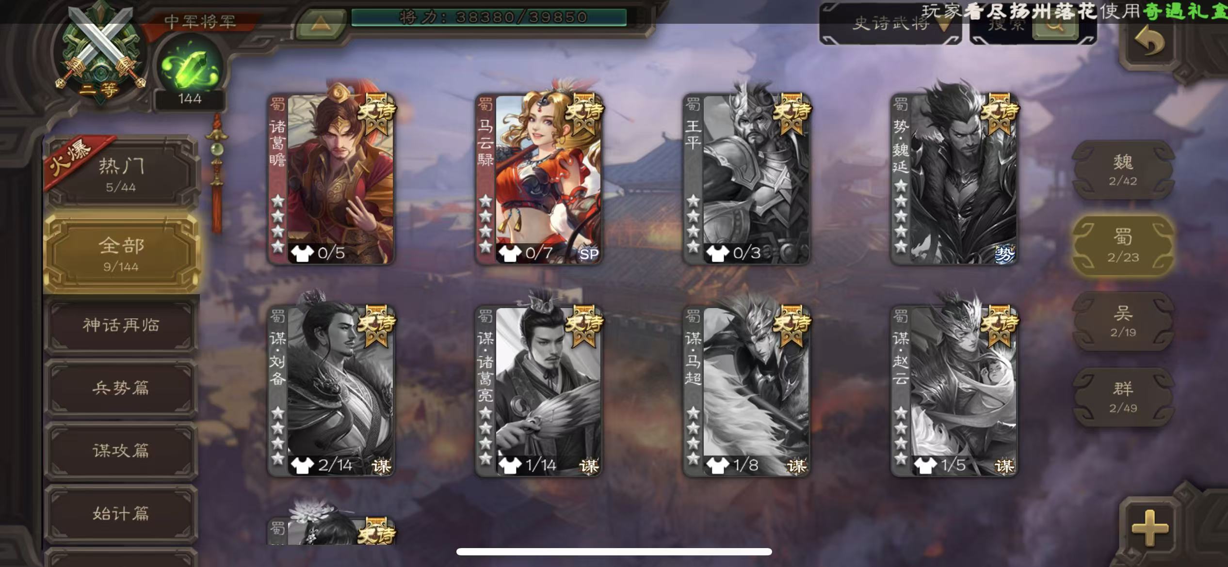 中军动态大宝9史诗神赵云曹婴马云禄诸葛瞻谋白马张让三卡