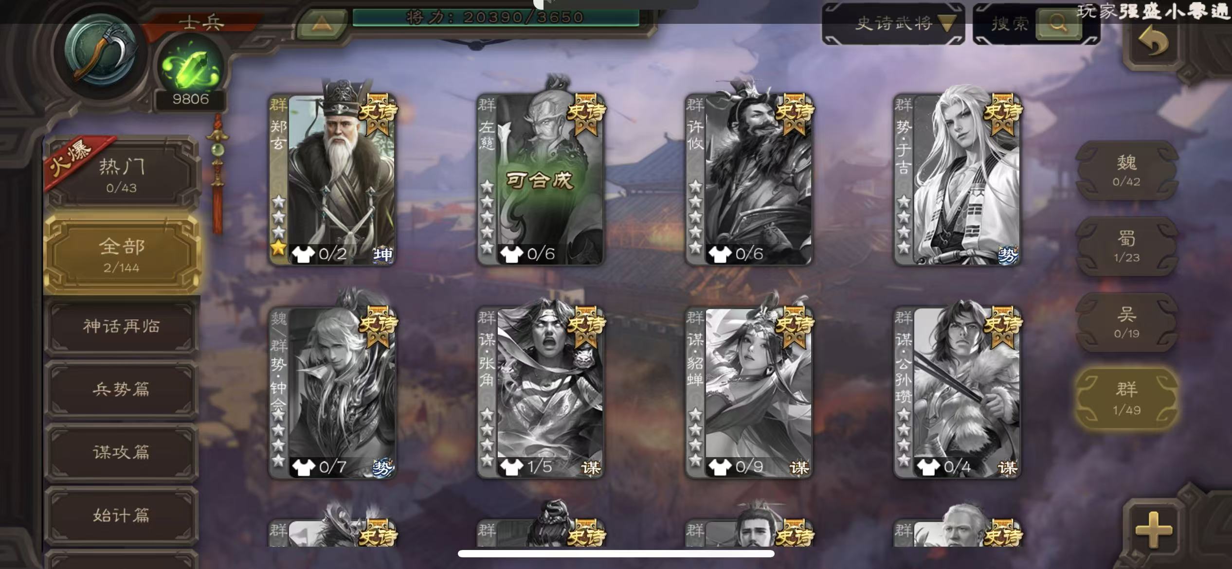 士兵郑玄70宝珠(可换火龙果)10万羽毛一万将魂140招募令三卡