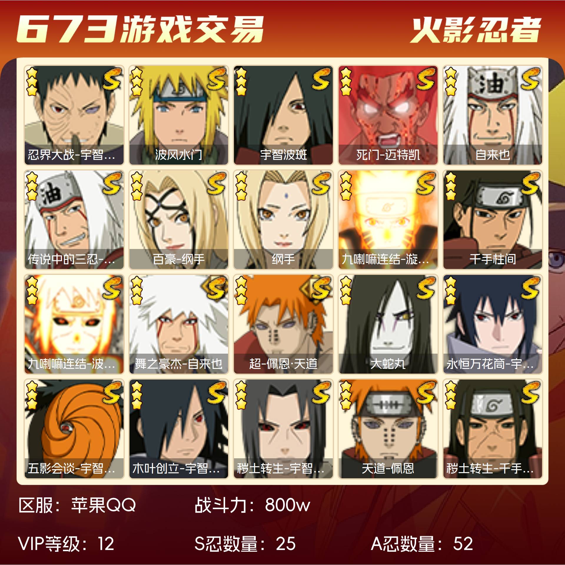 角色等级142 金币1000 战斗力800w S忍25 A忍52 12