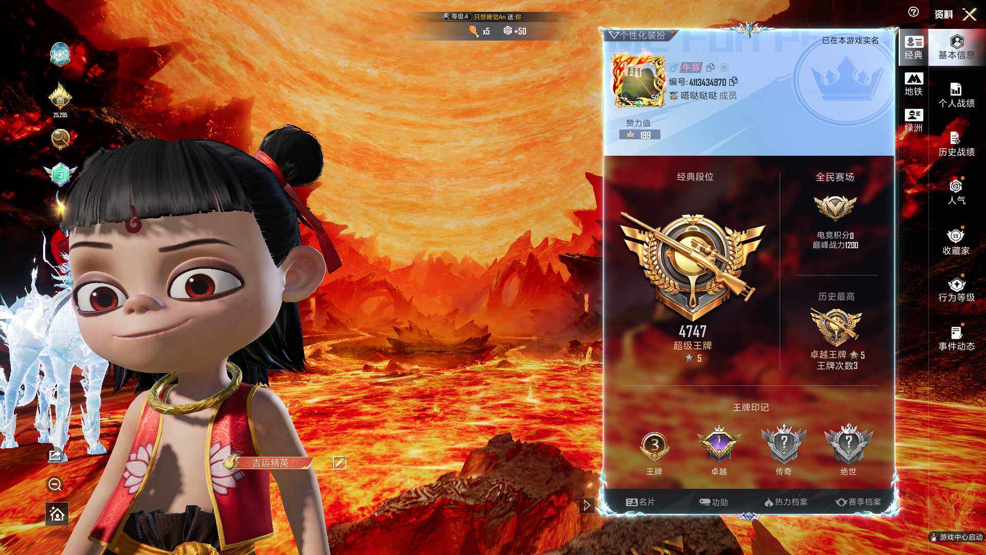 1神装-9粉装-20特效枪-5载具-5粉色飞行器-46411热力值-3王牌印记-75套装-119枪皮
