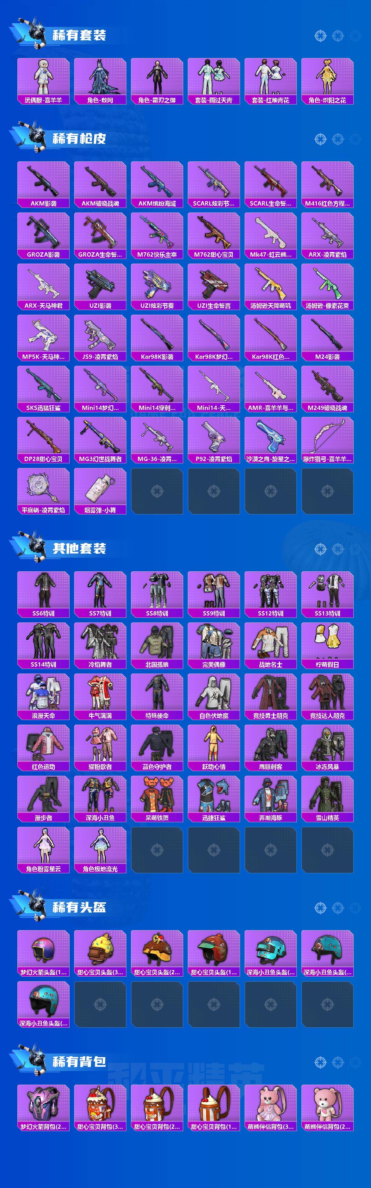 【特价出售/店主推荐】安卓 手Q-1神装-9粉装-20特效枪-5载具-5粉色飞行器-46411热力值-3王牌印记-75套装-119枪皮