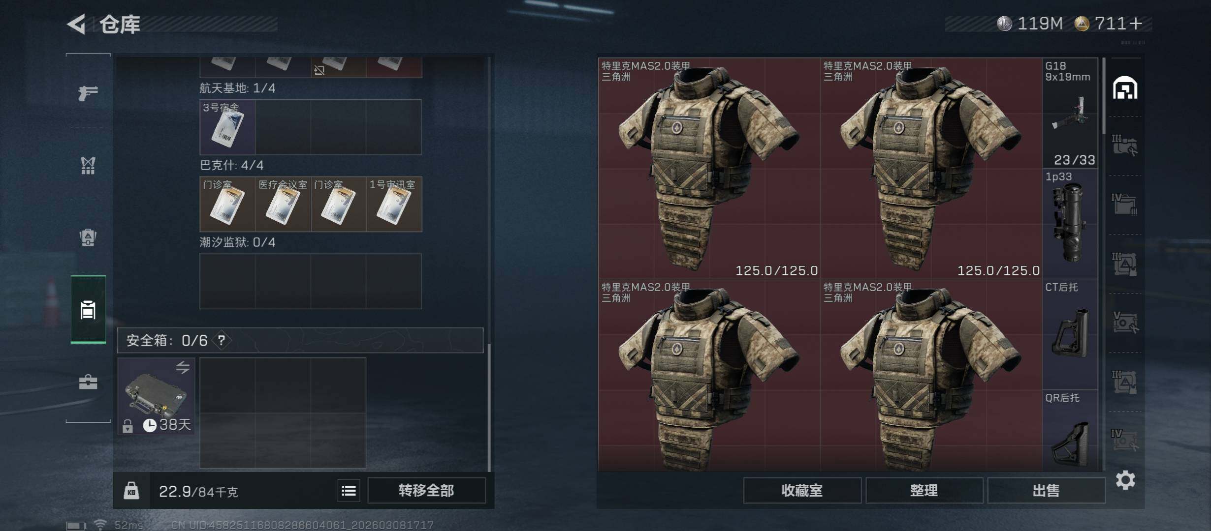 【热门组合搭配:单红+双刀+双典藏-蚀金玫瑰+北极星+信条.资产242M】【无二次】YXz8912-特勤处:仓库8级/靶场6级/训练中心7级-242m总资产-119M哈伏币-60烽火等级-黑鹰-42战场等级-上等兵